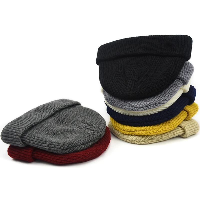 Модная теплая вязаная шапка без козырька, мужские облегающие шапки,...