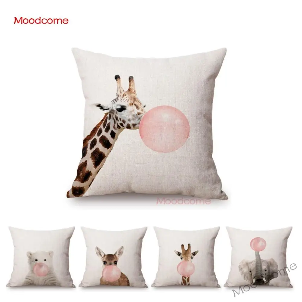 Чехол для детской диванной подушки, с изображением лесных животных,...