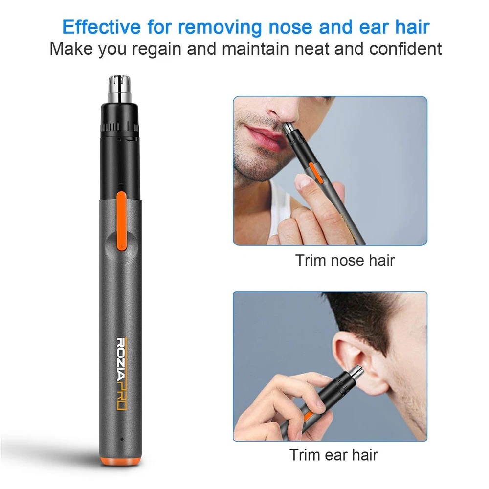 USB Quick Charge 10 сек --- если вы спешите и хотите подрезать волосы в носу, наш нос Триммер для волос заряжается всего за 10 секунд. (без адаптера) Уникальный дизайн --- этот триммер очень эффективен для удаления волос в носу и ушах. High-end Элегантный и компактный триммер для волос в носу с ручкой. Возьмите его в любое место, чтобы иметь дело с Ваши неудобные проблемы вежливы. Система вращающихся лезвий --- этот триммер для волос в носу использует систему вращающихся лезвий с двумя краями С защитной крышкой, внутренняя вращающаяся на 360 ° конструкция, которая точно удаляет волоски Без болезненной и неприятной тяги. Легко чистить --- режущая головка триммер для волос в носу съемный, удалите Внешнее лезвие головы, протрите нос или волосы уха от двойного края лезвия с небольшим Почистите и промойте в воде, а затем сохраните ее сухой. Roziapro Электрический триммер для волос в носу Зарядка через usb Вход AC/DC 5V---1A Напряжение двигателя: DC 2,4 В Время зарядки: 5 минут Время работы: 20 минут Батарея: литиевая батарея Наш триммер для волос в носу заряжается всего за 10 секунд Этот триммер для волос в носу использует двойную систему Спиннинговых лезвий с защитным покрытием, внутренним Вращающаяся на 360 ° конструкция, которая точно удаляет волоски без болезненных и неприятных ощущений Вытягивание В комплект входит: 1x триммер для носа 1x USB кабель для зарядки 1x щеточка для чистки