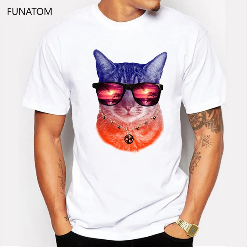 Повседневная трикотажная футболка с круглым вырезом, качественная свободная Хлопковая мужская футболка с коротким рукавом и принтом кота