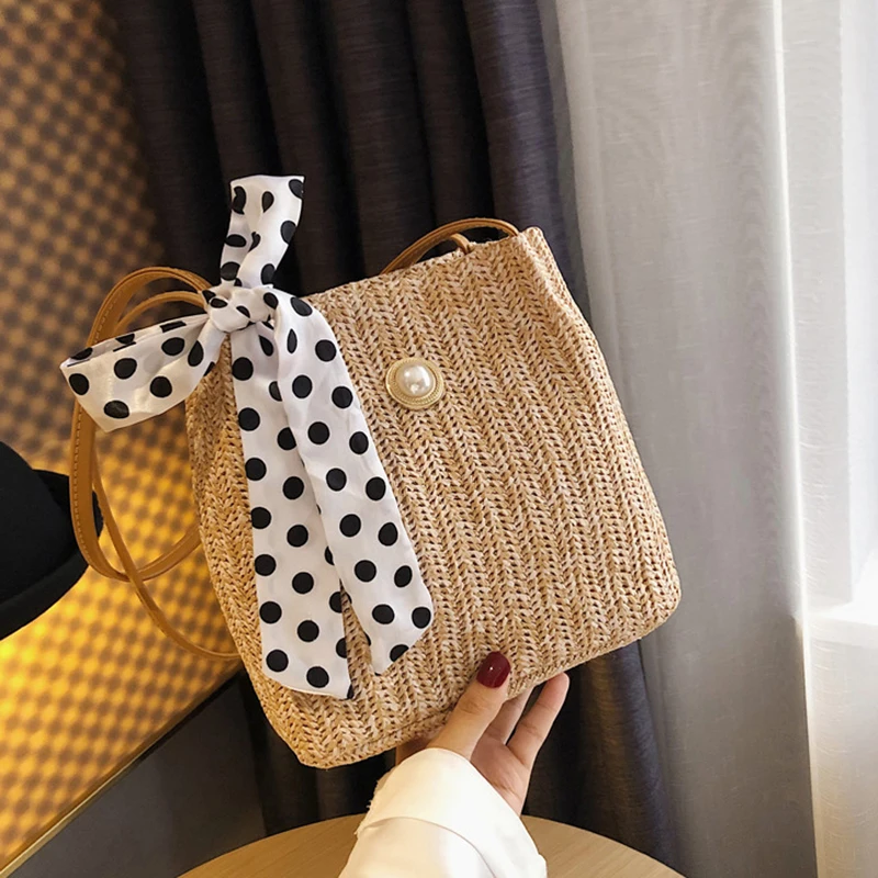 Новинка 2022, женские сумки, Повседневная тканая сумка в Корейском стиле для женщин, простая кружевная сумка через плечо с кулиской, женская сумка