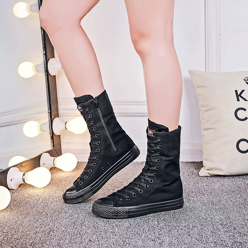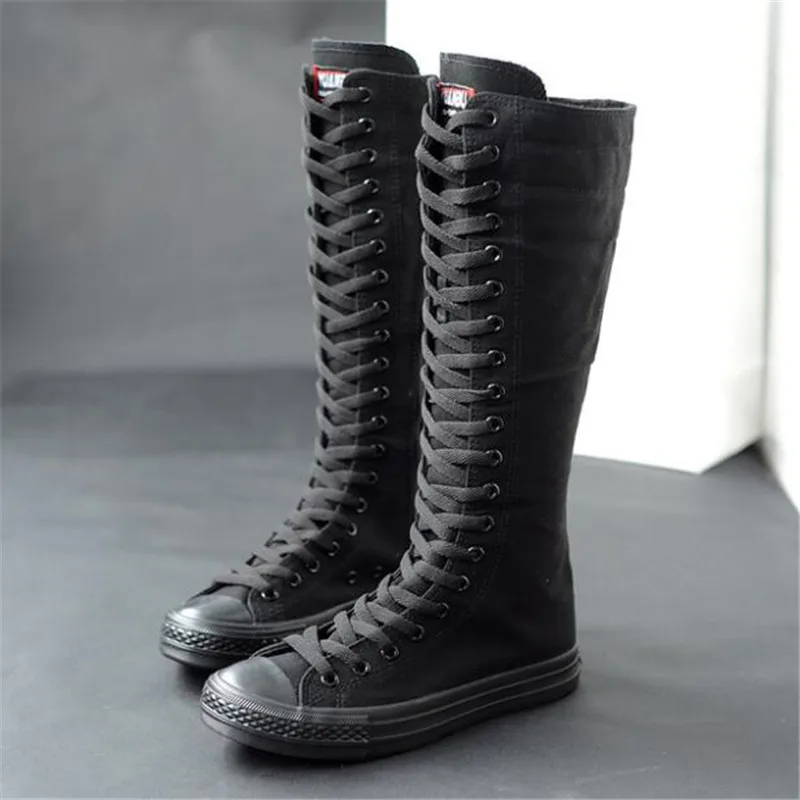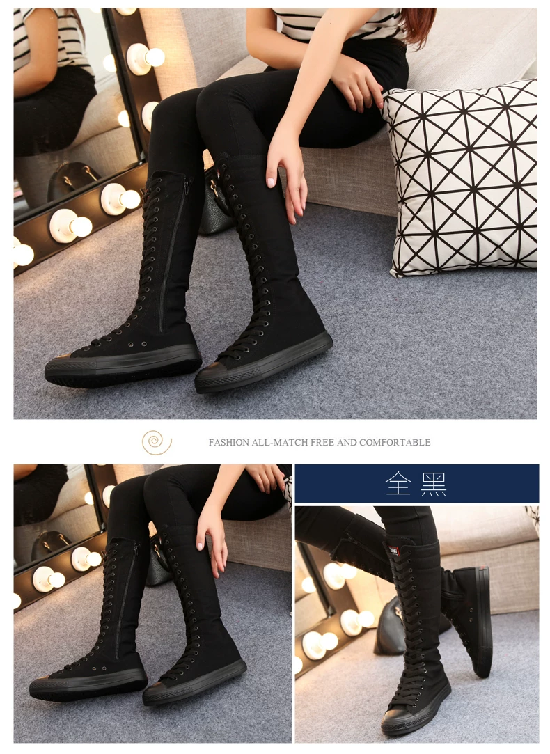 Высокие женские сапоги-трубы; Повседневные холщовые кроссовки с боковой молнией на ремешке; Женская обувь; Зимние сапоги; Женские высокие сапоги до бедра