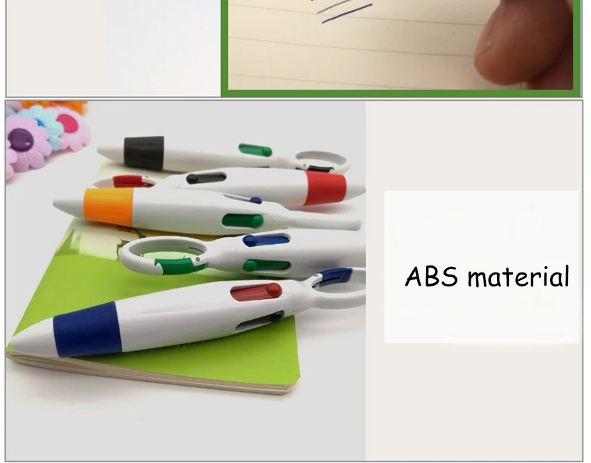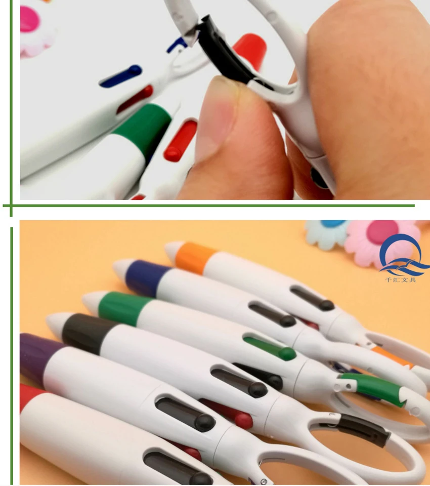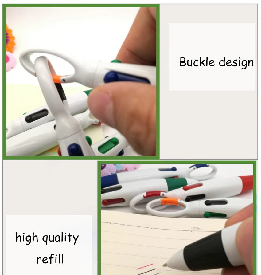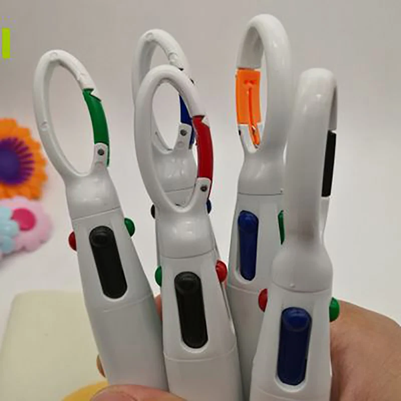 4 в 1 цветная шариковая ручка с ярким карабином, карманная шариковая ручка, школьные канцелярские принадлежности, пряжка, ручка для письма