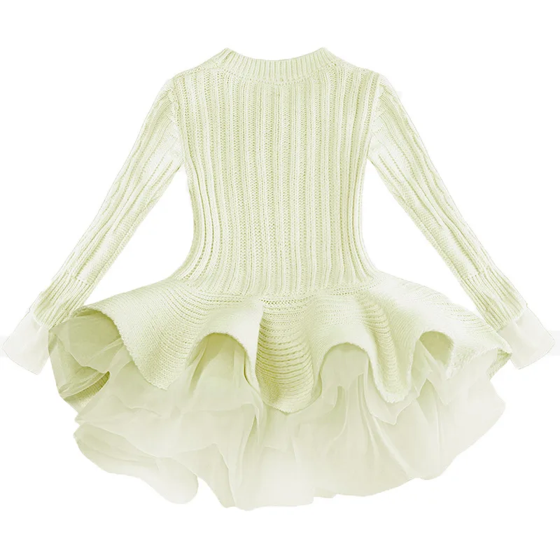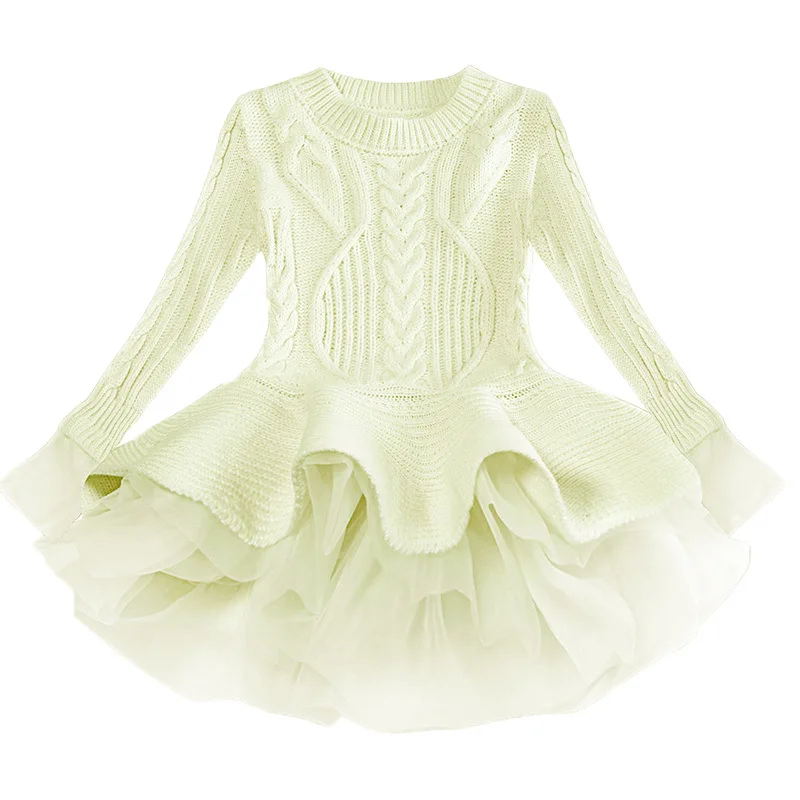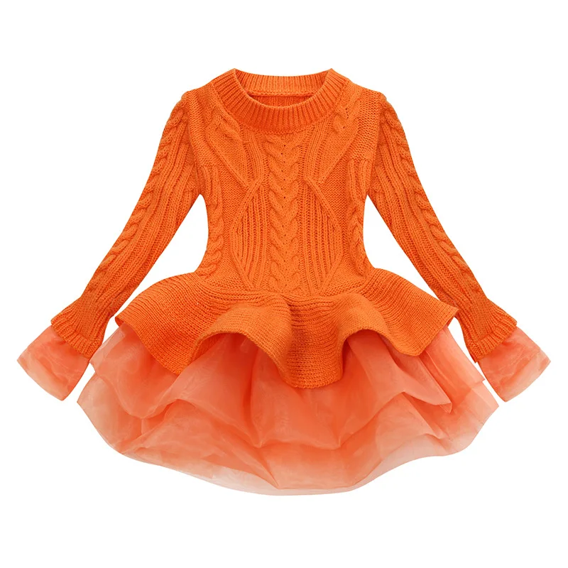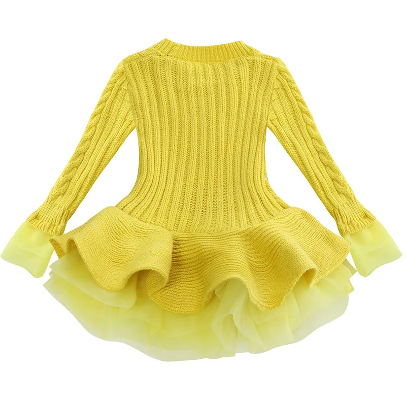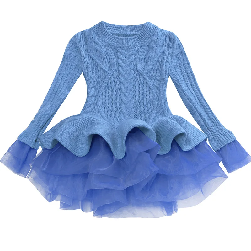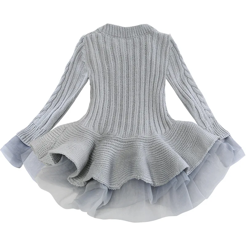 Платье-свитер для девочек, осенне-зимнее платье-пачка принцессы для девочек, теплый пуловер с длинными рукавами, вязаный свитер, детская одежда