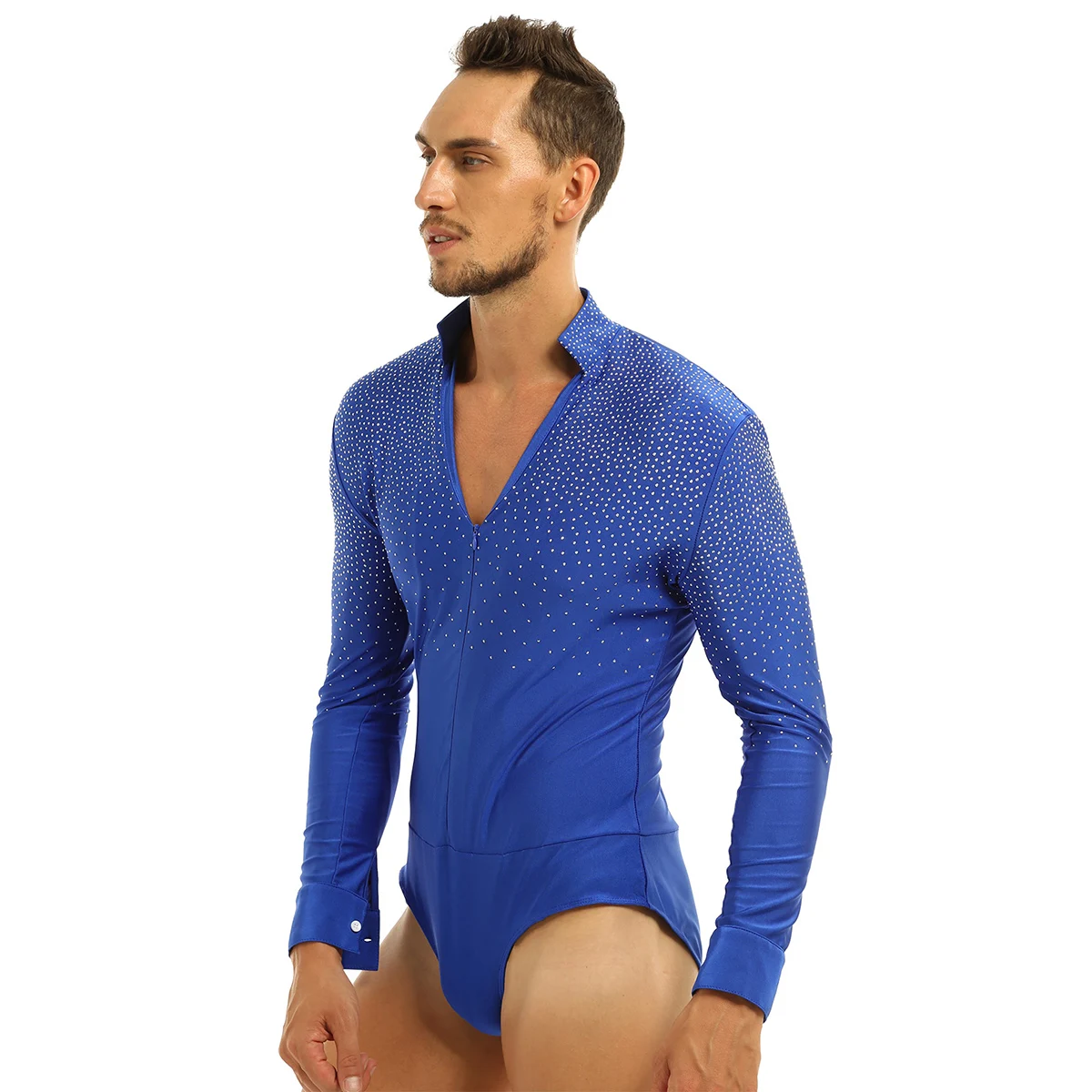 Особенности:Мужской Цельный бальный костюм для латиноамериканского Танго Румба Танец трико для танцев с рубашкой боди рубашка Топы, хорошая эластичная ткань.Длинные рукава, v-образный вырез горловины и воротник стойка, верхний лиф с блестящими Стразы, потайная молния спереди, ластовица с проймой на 3 пуговицы.Классический и стильный, удобный крой, а также обеспечивающий большую гибкость во время танцевальных движений, это лучший выбор для вашего танца.Подходит для латино-Танго, румбы, дамбы, выступлений на сцене вечерние на Хэллоуин, профессиональных танцевальных соревнований и так далее.Пожалуйста, внимательно проверьте размер перед покупкой, ручная или машинная стирка в холодной воде.