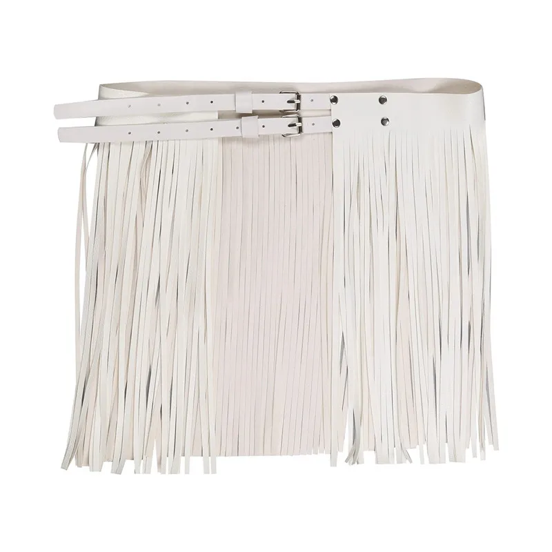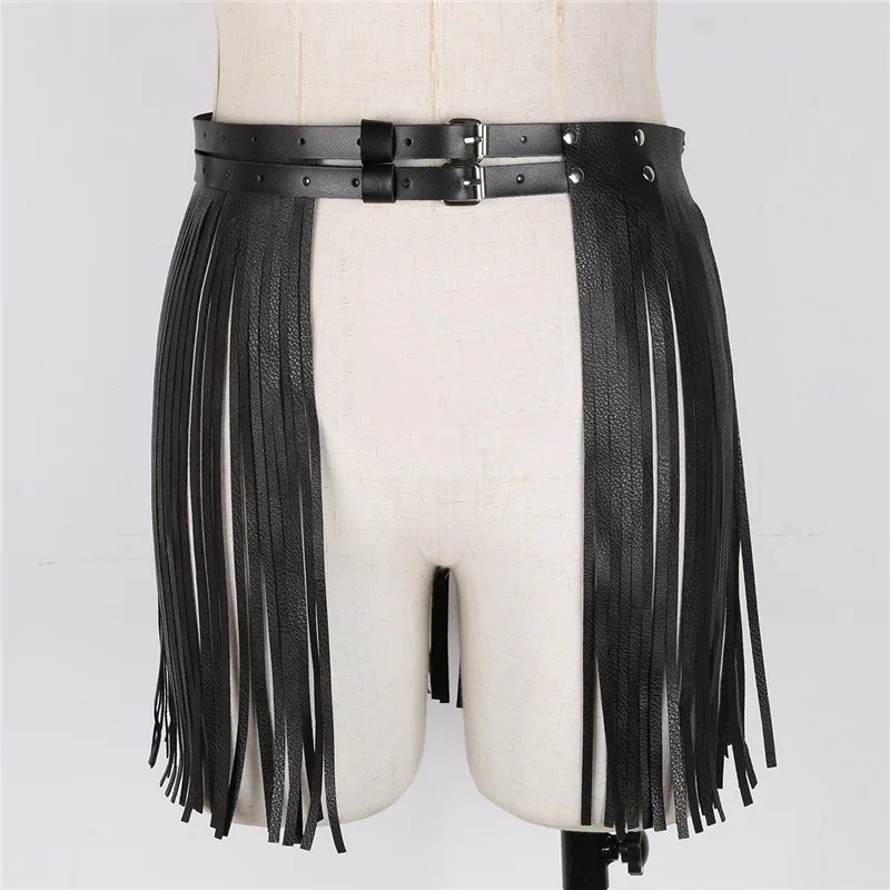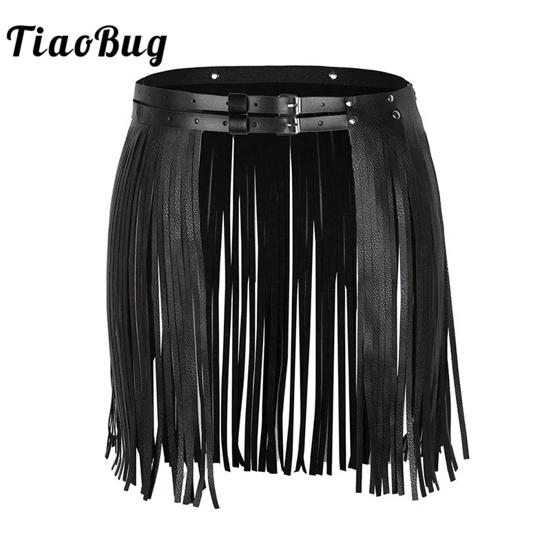 Модная Регулируемая юбка TiaoBug в стиле панк, готика, Женская юбка с бахромой и кисточкой, ремень для клувечерние, наряд для костюма