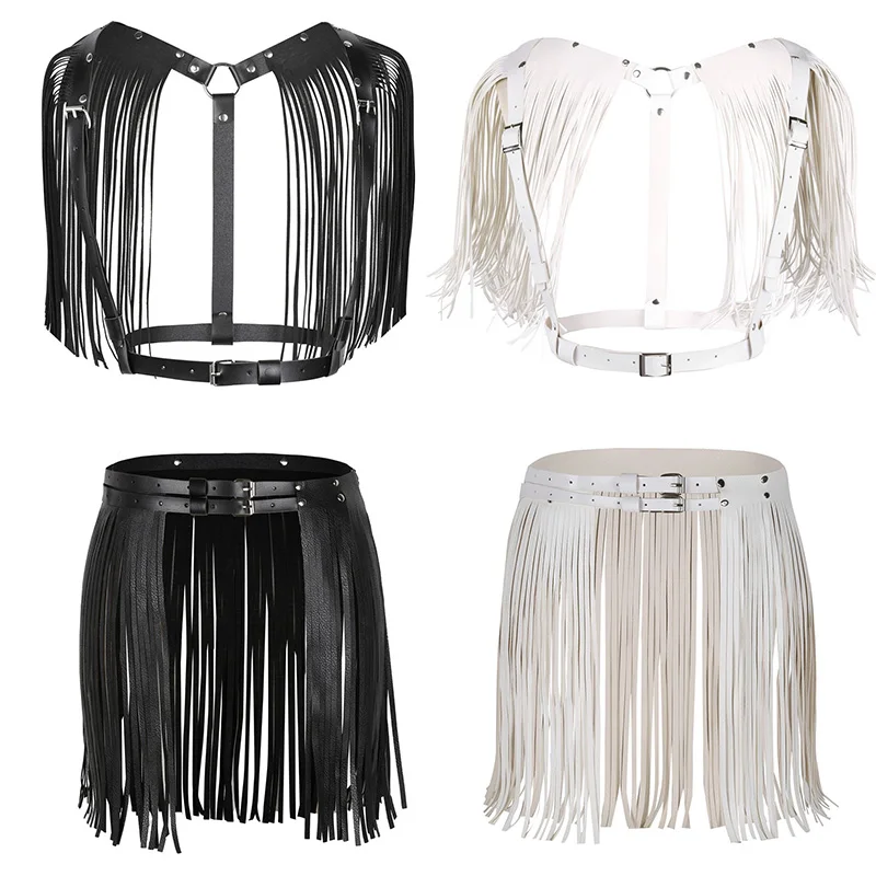 Комплект включает в себя: 1 шт.; Юбка с бахромой и поясом1 шт. пояс с бахромой и юбкойСостояние: Новый без биркиМатериал: Искусственная кожаЦвет: Многоцветный (как показано на фотографии)