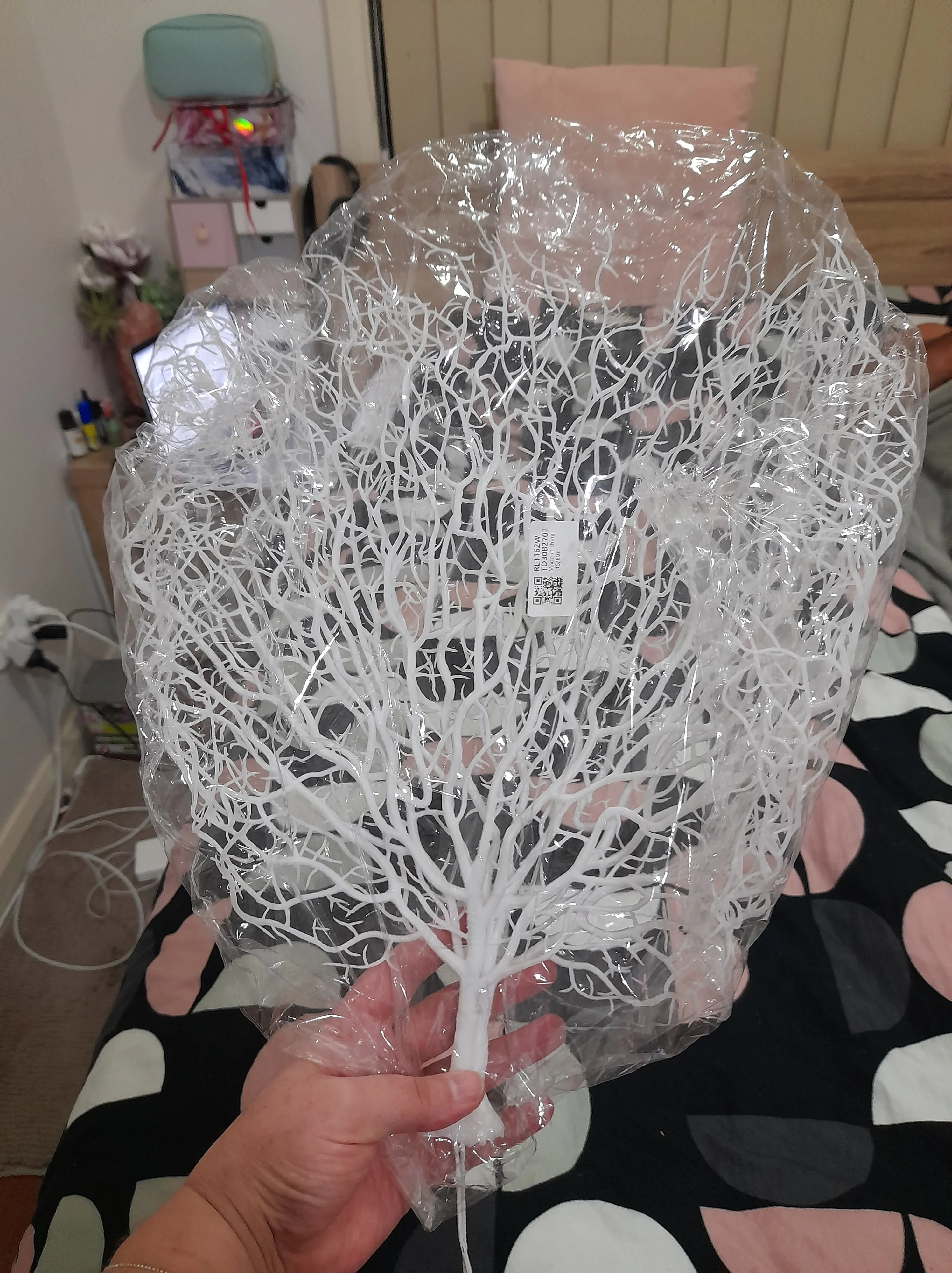 Товар дошел быстро. На этом хорошее заканчивается. НА фотографии продавца веточка красивая, а я что не делала - расположить ветки не смогла, и над паром держала, фигня одним словом. Пышности никакой, две плоскости и точка и пластик черный, а не коричневый