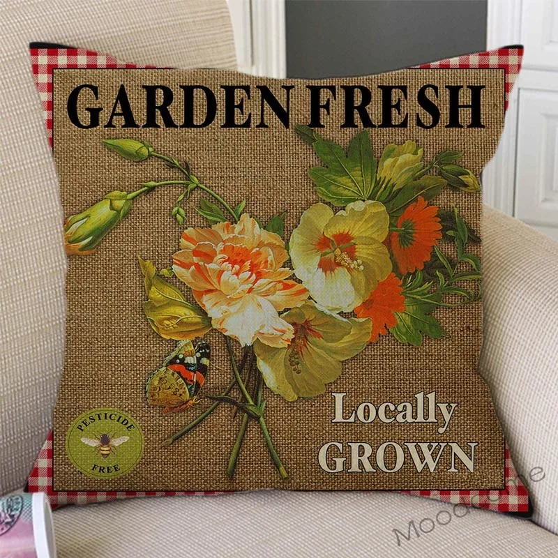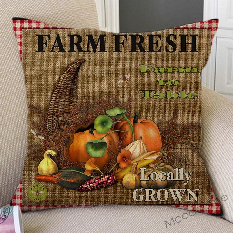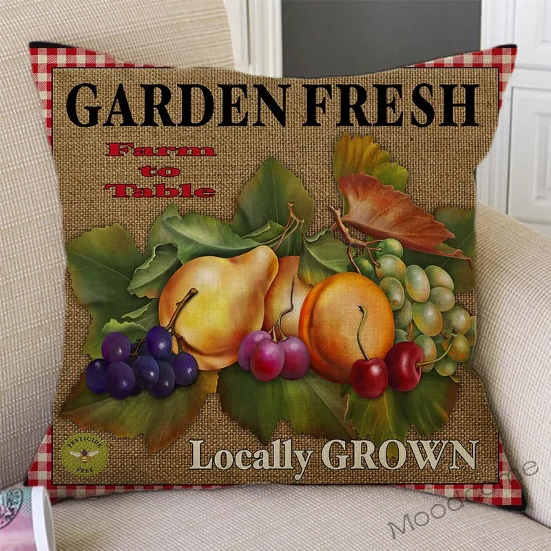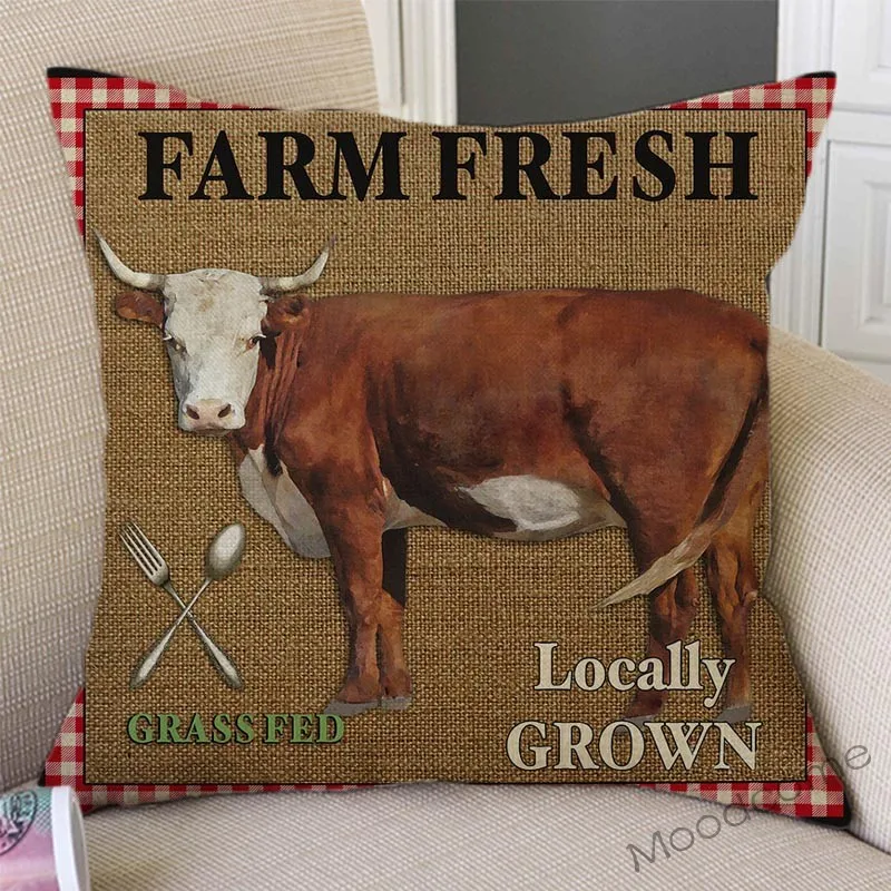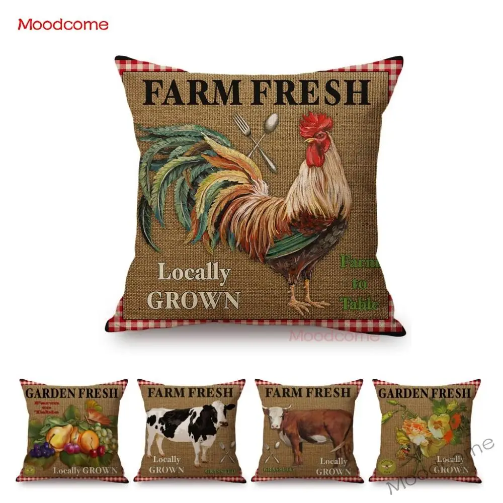 Винтажная наволочка для домашнего декора с изображением петуха, коровы, овощей и фруктов, для домашнего декора