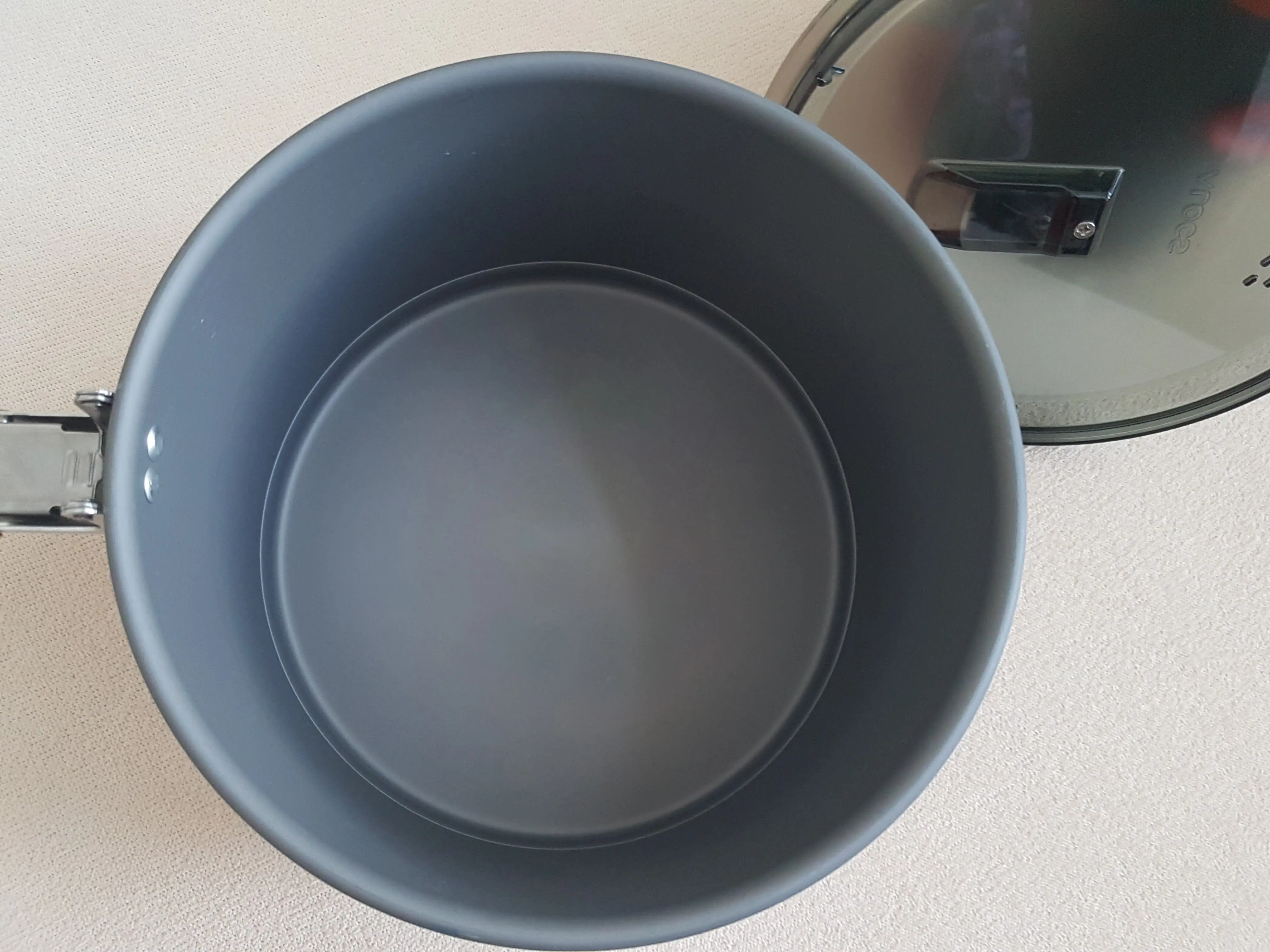 Все как в описании. Вес 470 г. Объем: Можно использовать до 2л, максимум до края 2,3л. Механизм блокировки на ручке имеет небольшой дефект, но он может быть отремонтирован плоскогубцами. Анодирование безупречно, без каких-либо повреждений. Это большой горшок, быстрое кипячение воды, идеально подходит для кухни для кемпинга на автомобиле. Очень нравится.