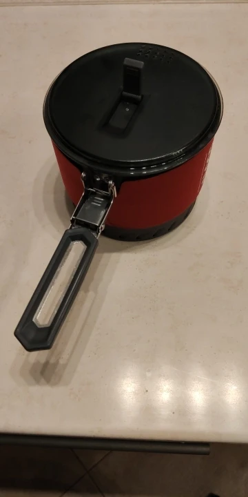 Внешне сделан отлично, ручка с фиксатором, плюс теплоизоляция и радиатор на дне экономят газ, цена отличная. Я не знаю зачем покупать любую другую посуду в поход. Брал для бензиновой ковеи бустер+1. Всё отлично совмещается.