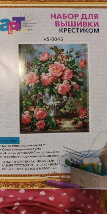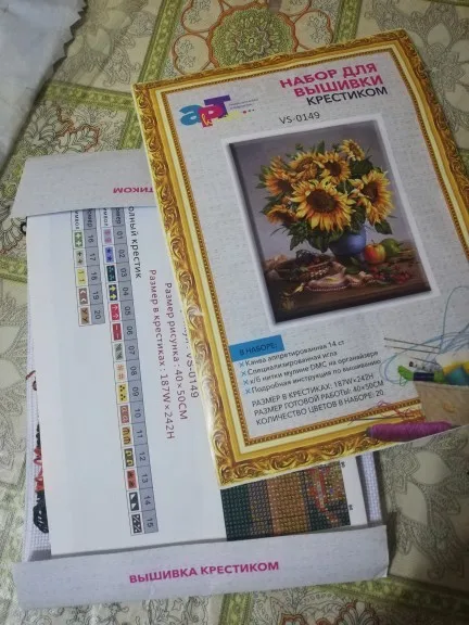 Мама довольна тем что пришло на удивление оч быстро, а то все остальное все уже вышила и сидела без дела. Все в комплекте есть. Качество хорошее