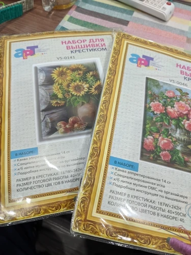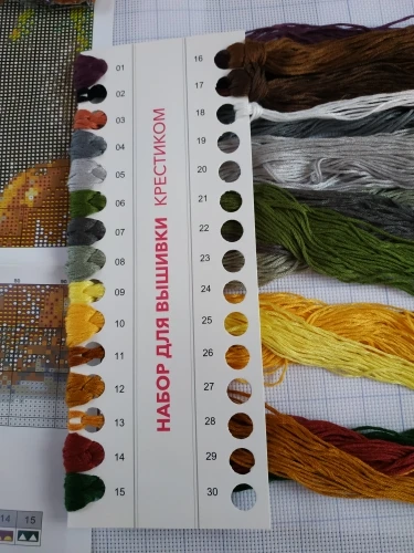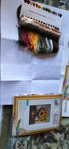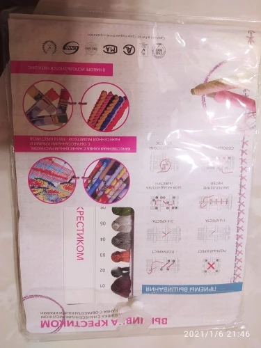 Вышивка хорошая. Нитки яркие. Покупаю не в первый раз у этого продавца , поэтому расскажу о «НО» , которые нужно иметь ввиду. 1. Канва хорошая, расчерчена, но не оверложена, хотя это заявлено у продавца. 2. Мне это очень не нравится- нитки идут без номеров палитры DMC. Т.е. ниток достаточно для вышивки. И остаётся немало. Но в принципе, воспользоваться дальше- это проблематично. Ну если методом проб и ошибок.