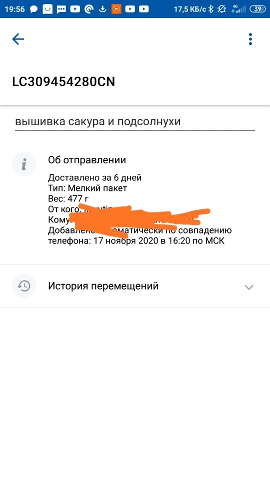 Доставка 21 день. Отслеживалось.Брала на подарок, подарок понравился(фото получилось перевернуто, заново отснять не могу, так как вышивку подарила).Товар описанию продавца соответствует.