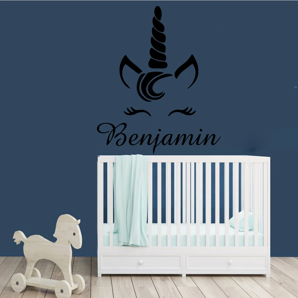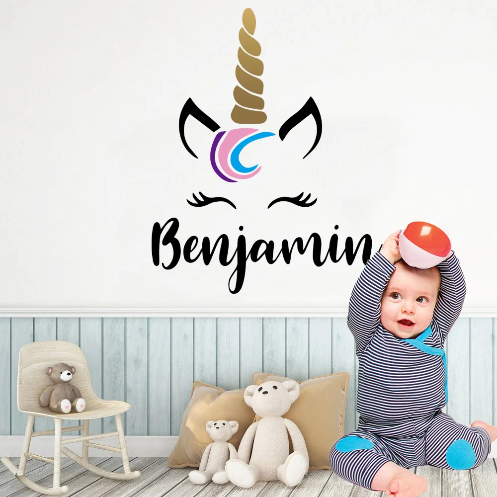 Персонализированные Имя Новое поступление популярный Наклейка на стену в форме единорога для маленькой девочки мальчики номер Декор монограмма тема плакат Настенные Виниловые W671