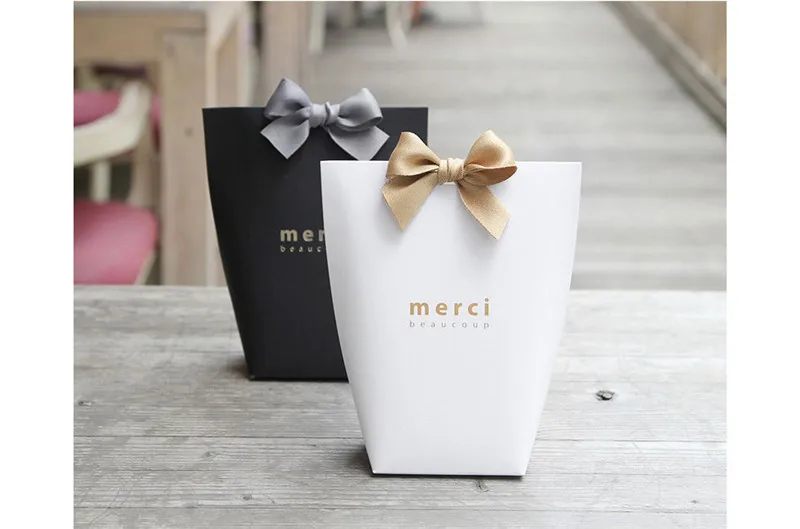 5 шт. высококлассные черные и белые бронзовые пакеты для конфет спасибо во французском стиле Подарочная коробка для свадебных сувениров пакет для подарков на день рождения