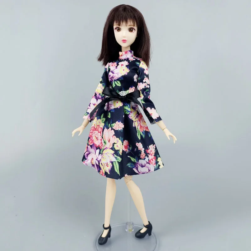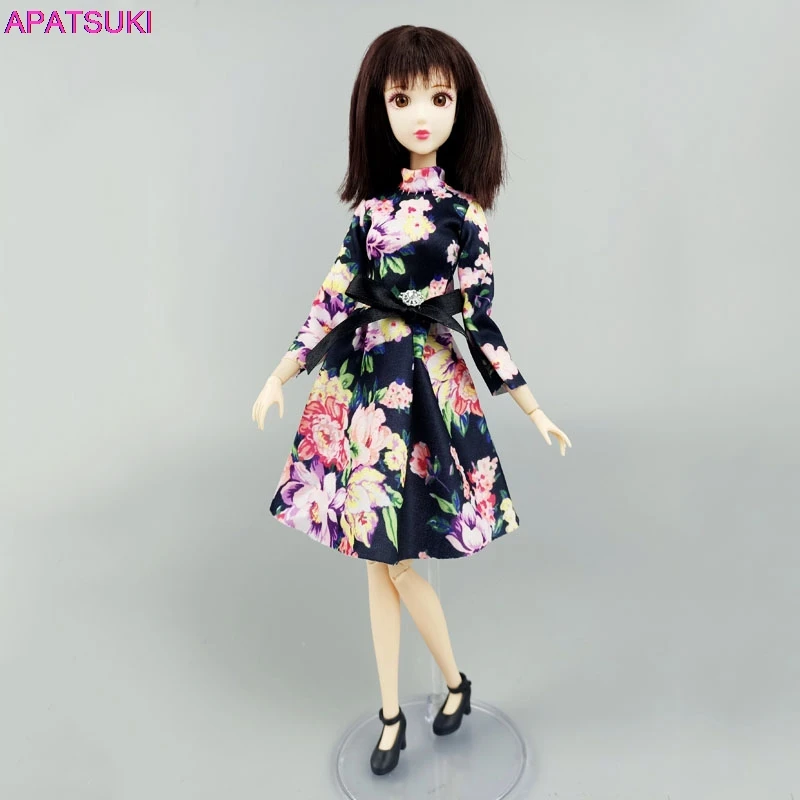Модная Одежда для куклы Барби, цветочный цветок с длинным рукавом, короткие платья для куклы Барби, кукольная одежда для шарнирных кукол, подарки