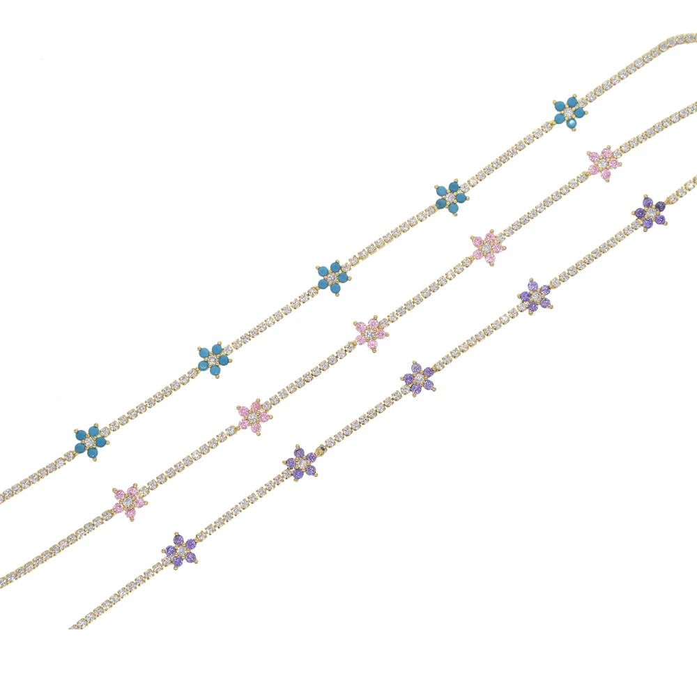 Романтическая тонкая теннисная цепочка с кубическим цирконием, Пастельная красочная подвеска в виде цветка маргаритки для женщин и девочек, элегантный нежный браслет, ожерелье, комплект ювелирных изделий