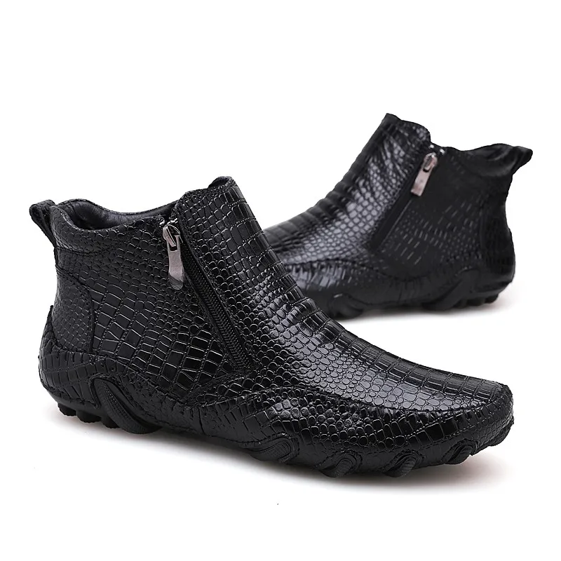 Мужские кожаные ботинки на молнии, Черные ботильоны на резиновой подошве, теплая Повседневная обувь для зимы, 2019