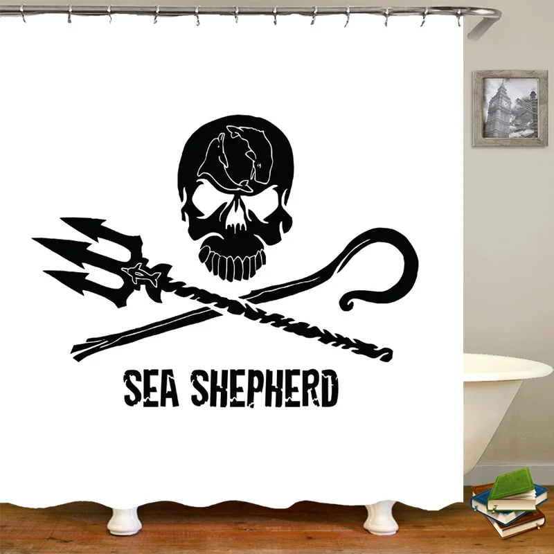 Стильная черно-белая Штора для душа с морским пастухом, Штора для ванной комнаты, набор водостойких штор с океанским воином, дикая природа, ванная комната, домашний декор 180