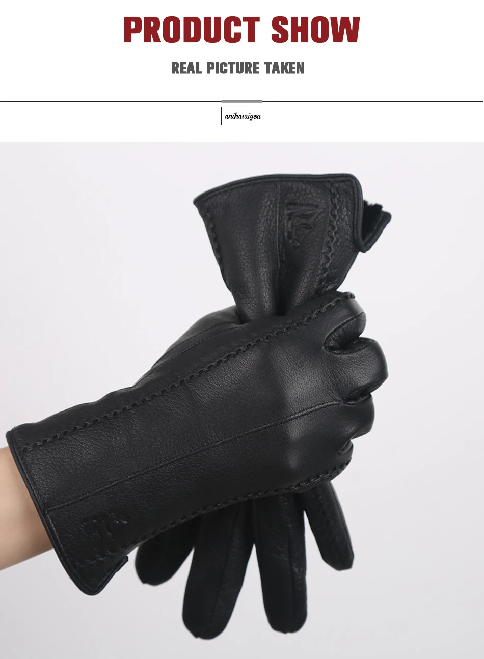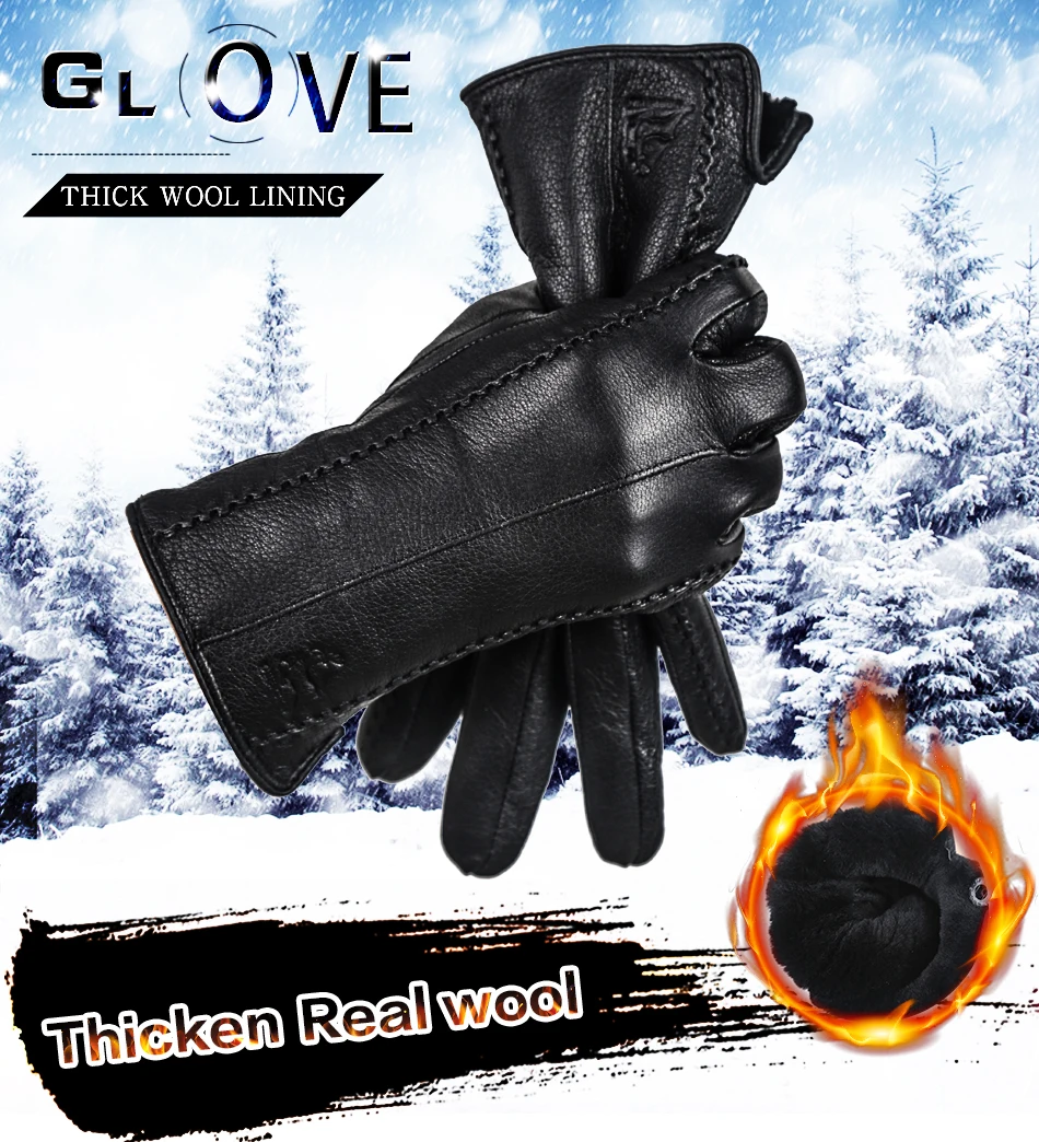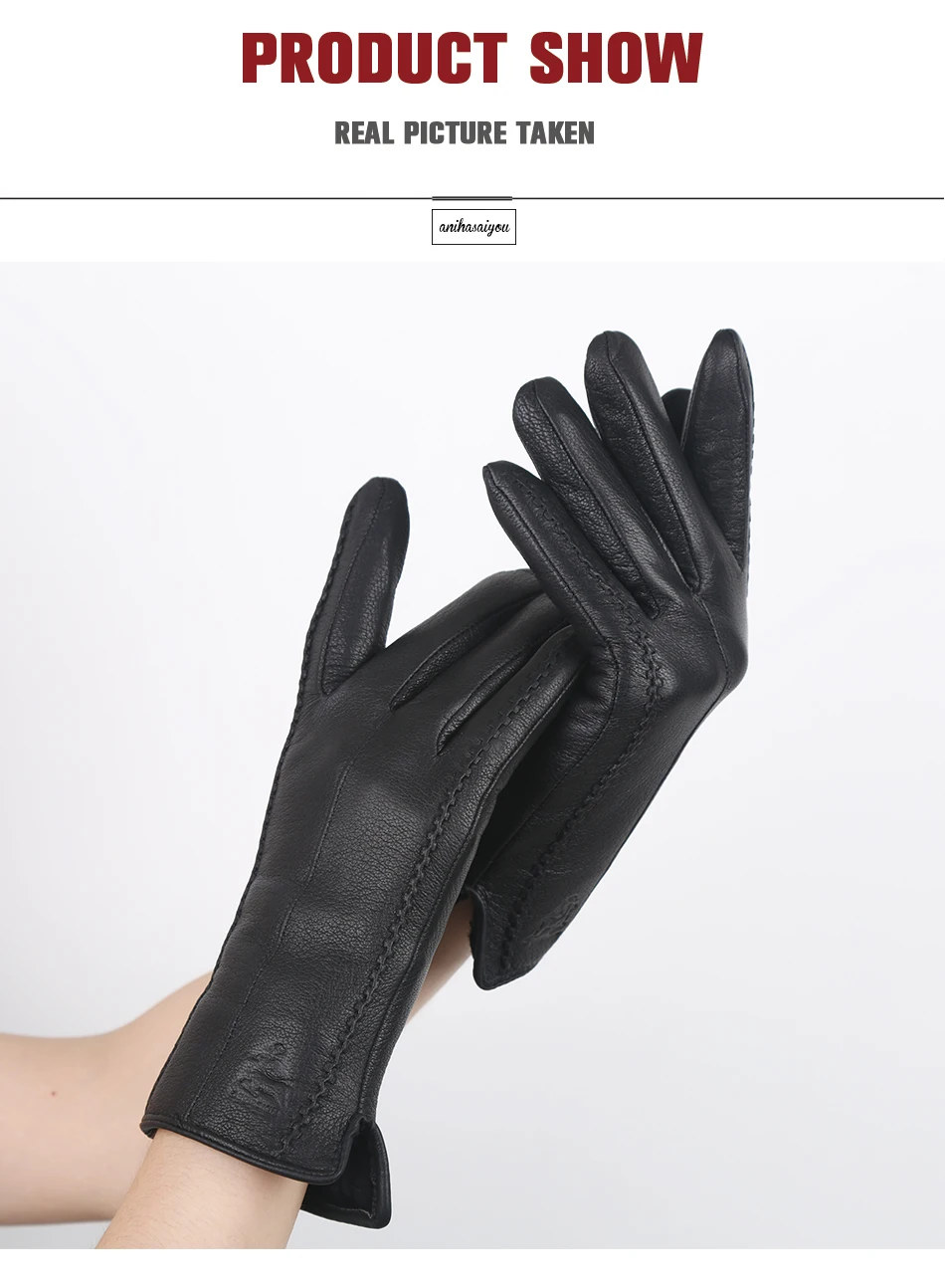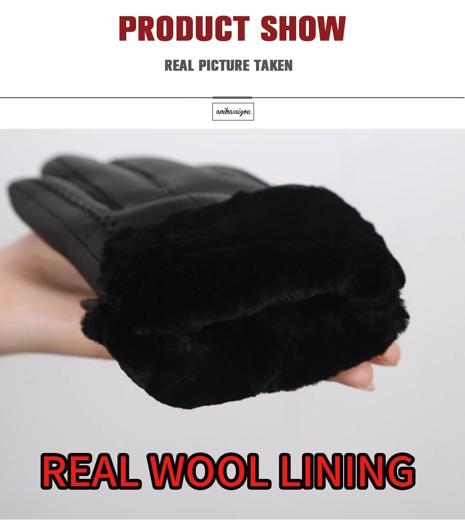 2019 Модные женские кожаные перчатки, теплые утепленные женские зимние варежки с подкладкой из натуральной шерсти, черные перчатки из овчины для женщин-2226