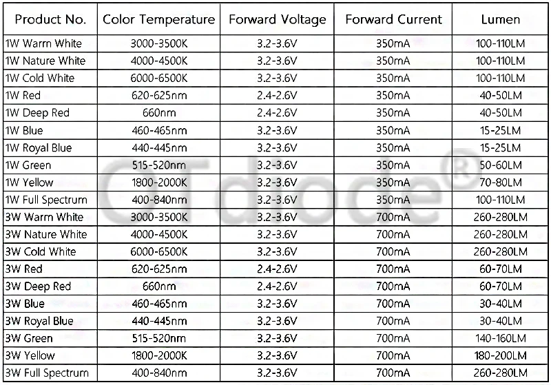 Ток: 1 Вт: 350мА 3 Вт: 700мА