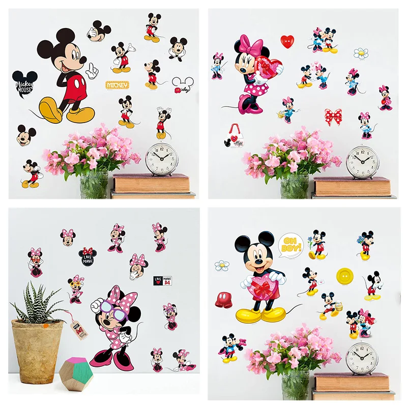 Мультяшные Дисней Микки и Минни настенные наклейки для детского сада, детская комната, украшение дома, аниме, настенная роспись, искусство, ПВХ, сделай сам, наклейки