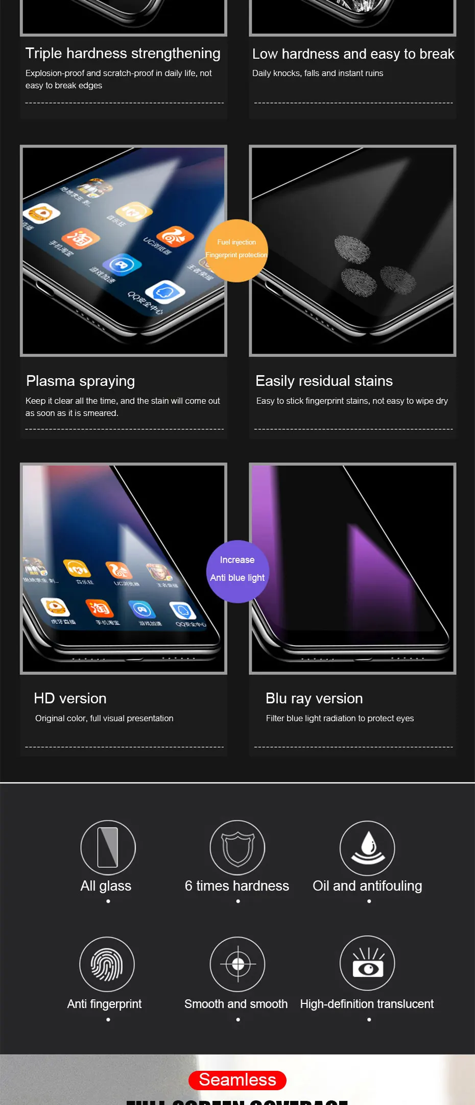 Закаленное стекло с полным покрытием для Xiaomi Redmi Note 7 6 5 Pr...