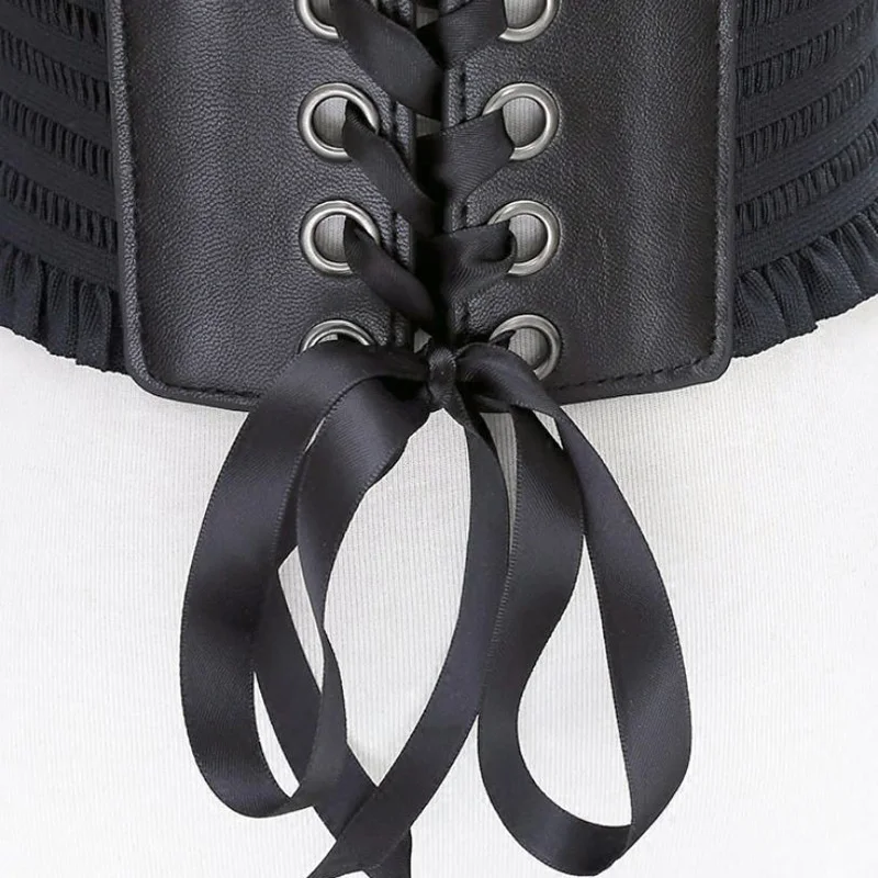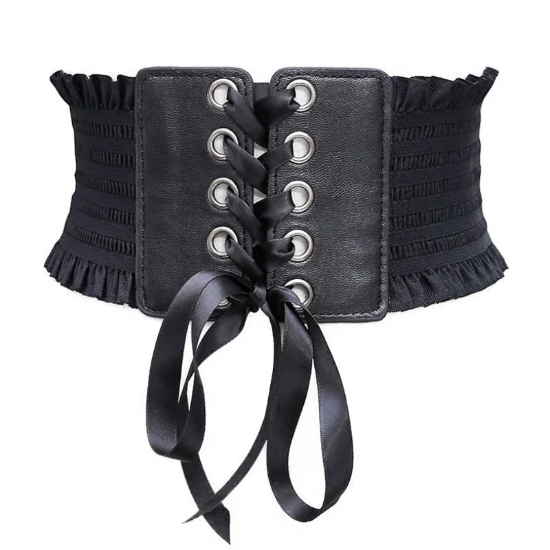 Винтажный женский широкий пояс с бантом из искусственной кожи, на шнуровке, с петельками, корсет из хлопка эластичный пояс, тонкий пояс