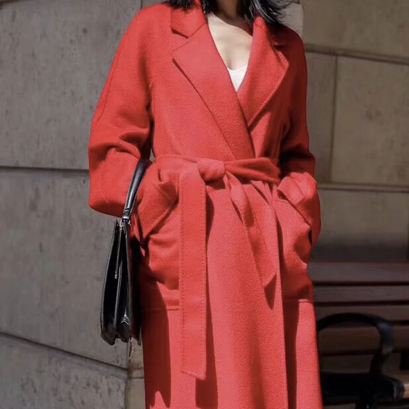 Женское кашемировое пальто, шерстяное однотонное пальто с отложным воротником и поясом, повседневная верхняя одежда, 2020