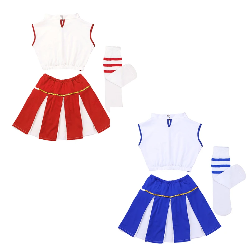 Детский костюм для девочек в стиле джаз, хип-хоп, костюм Болельщицы, детская танец Черлидинга, Униформа, короткий топ и юбка и носки, танцевальная одежда