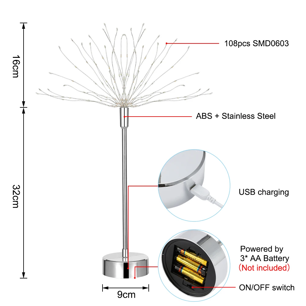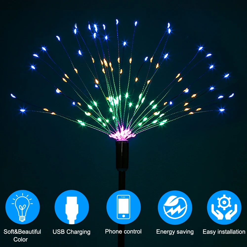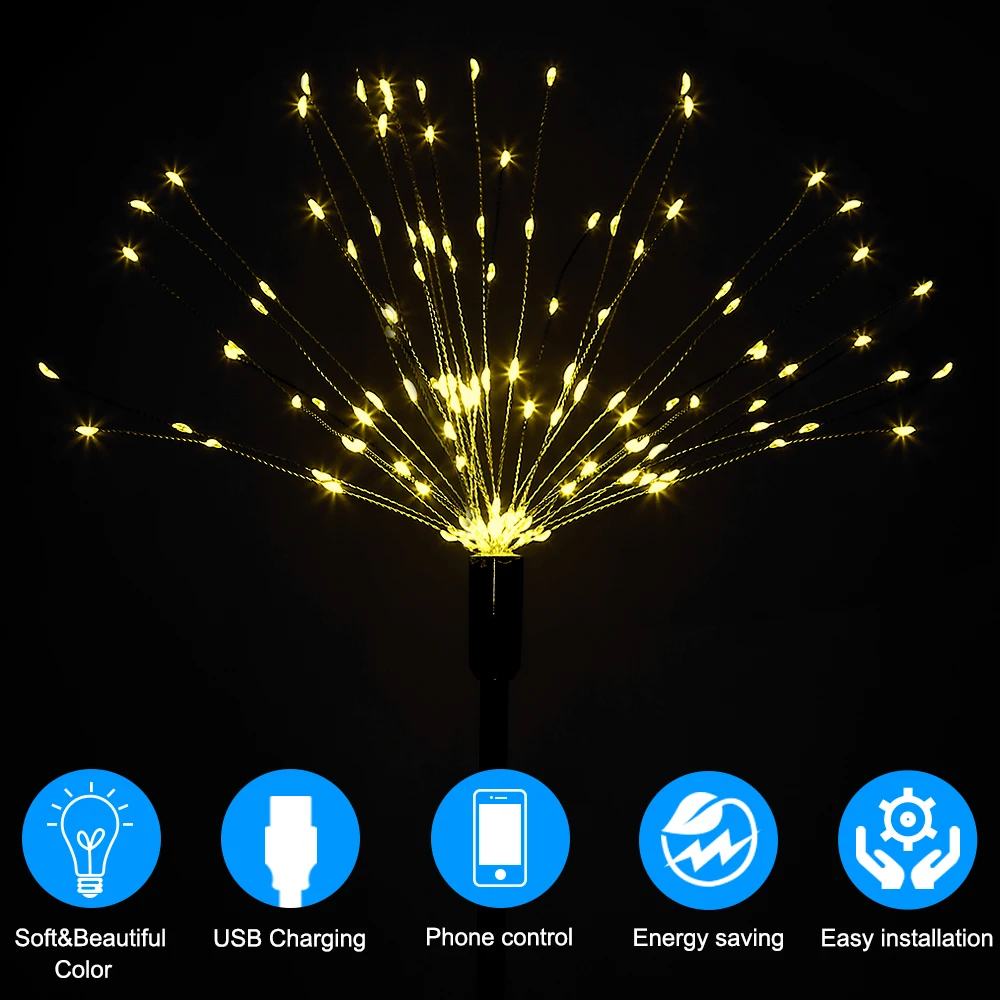 Светодиодные люстры FVT светильник фейерверк, Сказочная гирлянсветильник, ночная лампа, настольная декоративная лампа, с зарядкой от USB