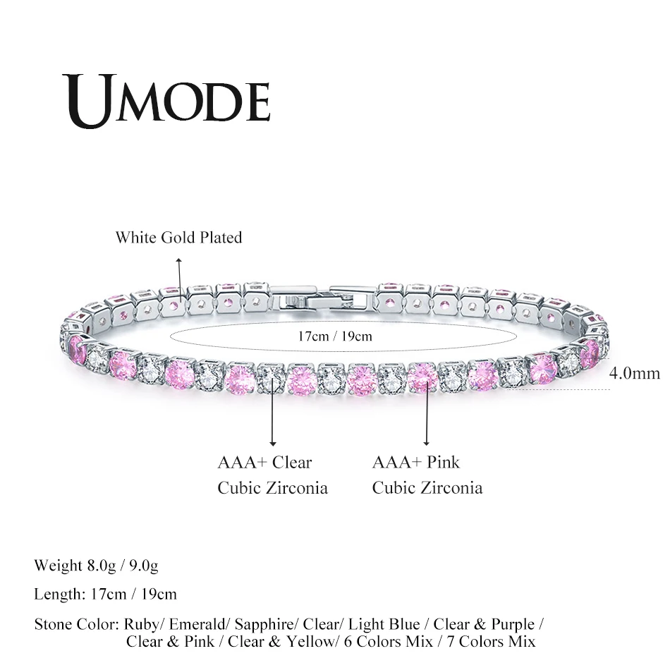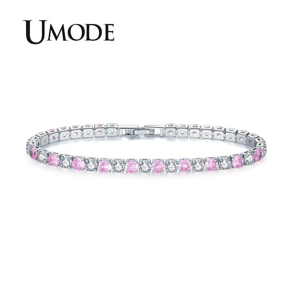Женские браслеты для тенниса UMODE с розовыми кристаллами, женские свадебные браслеты, циркониевые Роскошные ювелирные изделия, аксессуары, подарки для девочек UB0097G