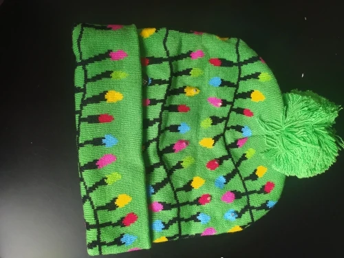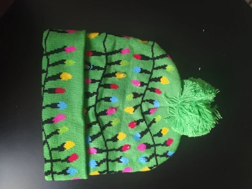 эту шапку брала себе.Лампочки белым светятся,не разноцветные,но мне нравится.Очень стильно смотрится.Как писала в другом отзыве,качество хорошее.В отличии от шапок подороже,тех что с отворотом у лица,эти не такие высокие,но все равно лоб прикрывают хорошо,и они более плотно сидят по голове.Я очень довольна.Спасибо продавцу