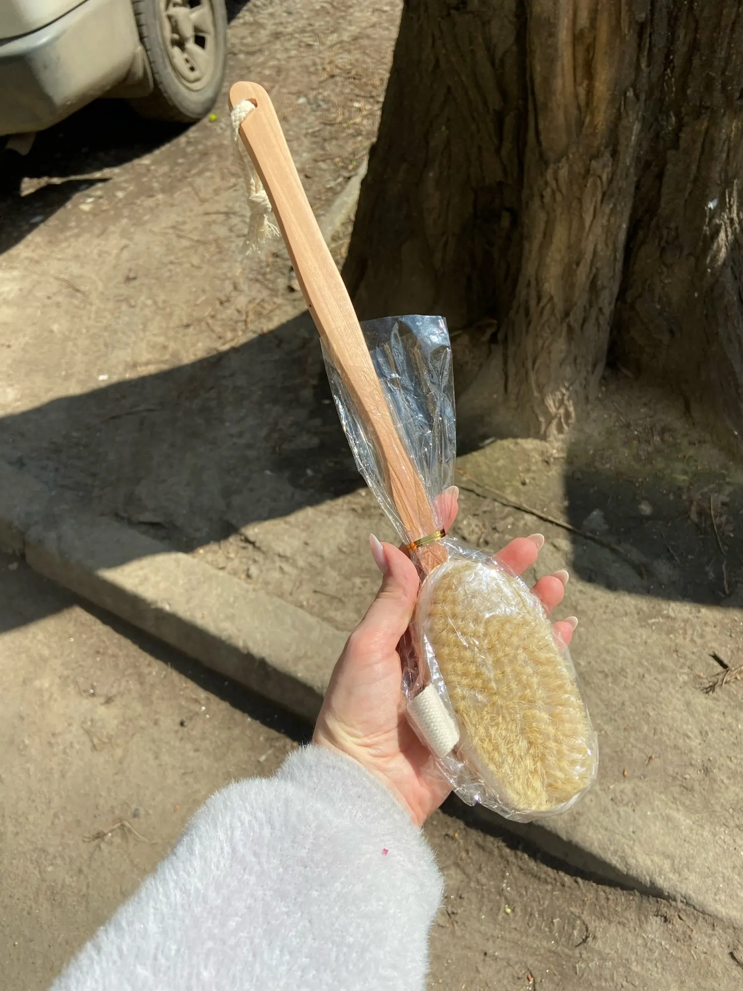 Щетка для душа с натуральной щетиной, отшелушивающая, с отстегивающейся длинной деревянной ручкой