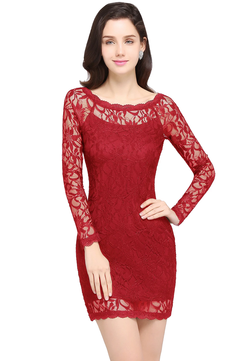 Женское короткое вечернее платье, кружевное ТРАПЕЦИЕВИДНОЕ ПЛАТЬЕ С Длинным Рукавом, элегантное бальное платье для вечерние, 2019
