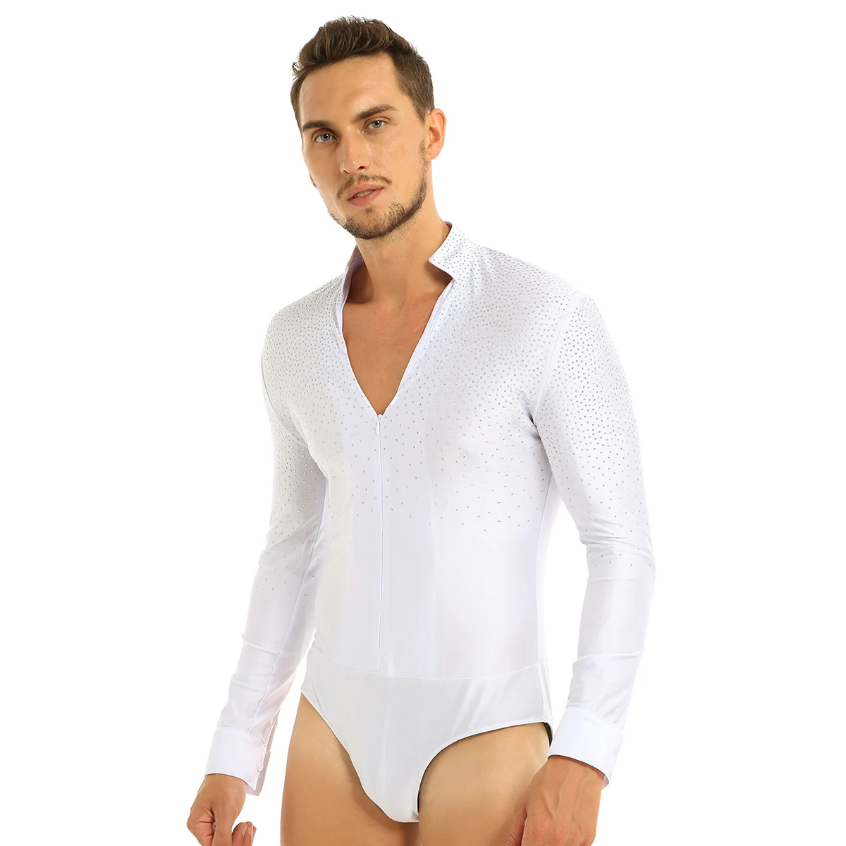 Мужская цельная бальная латинская Танго Румба танцевальная трико для танцев с рубашкой боди футболка Топы, хорошая эластичная ткань.