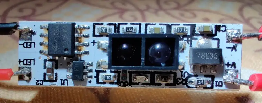 Отлично, модуль работает. В описании нет, но есть полезная функция, модуль диммируется, изменяя яркость свечения, достаточно поставить ладонь напротив сенсора и подержать через пару секунд будет плавно убавляться яркость. Если убрать ладонь на нужной яркости, чип запомнит её и при следующем включении будет включен выбранный уроверовень. Очень полезная функция, просто подносим руку и держим напротив датчика, как прибавить так и убавить. Доставка очень долгая и без отслеживания.
