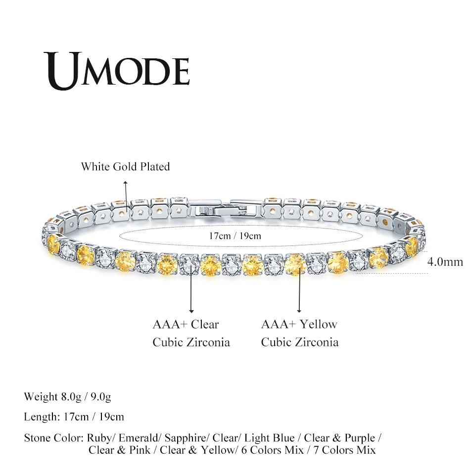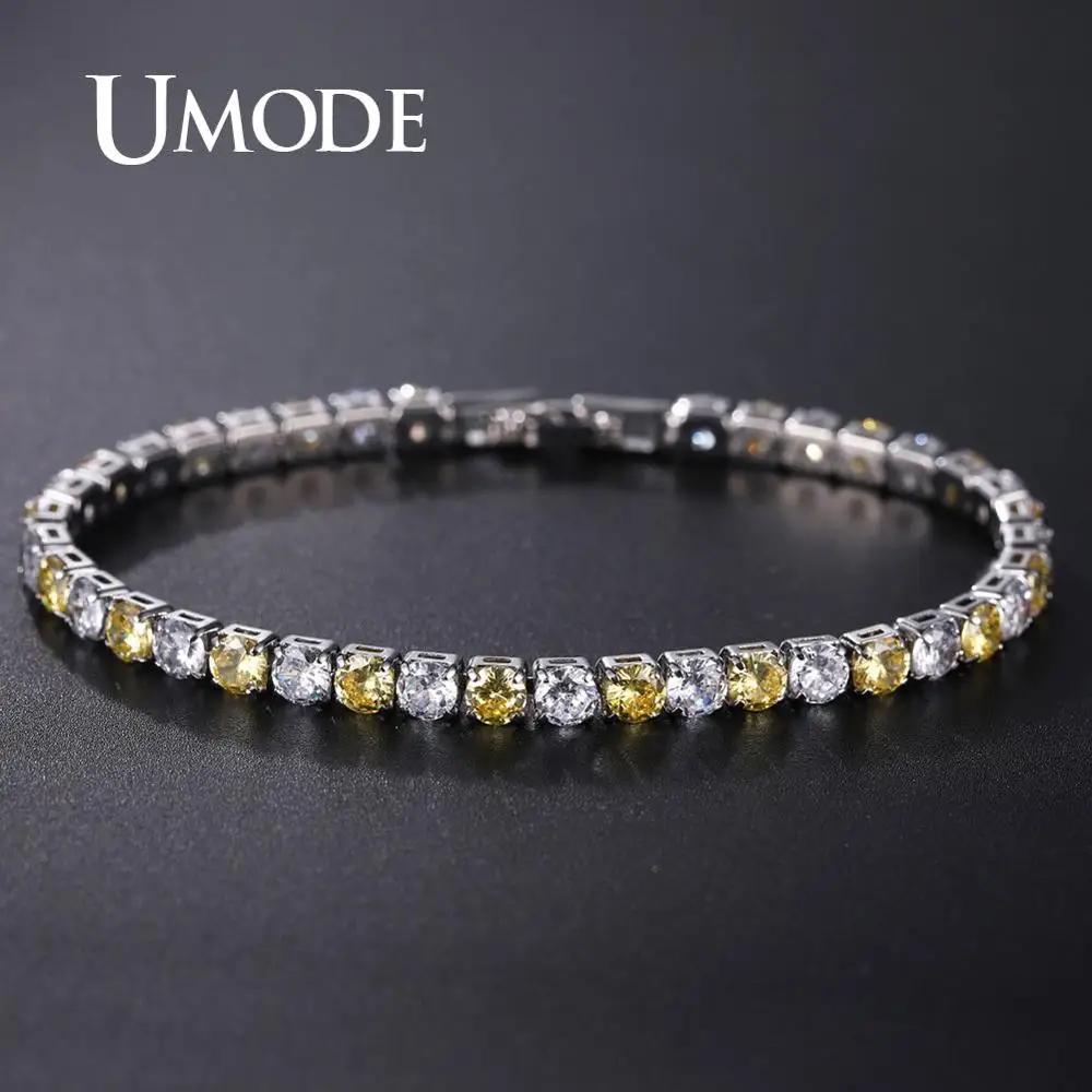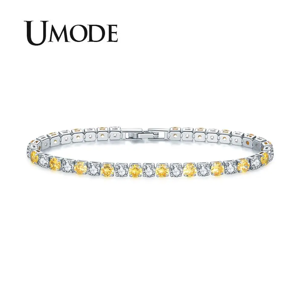 Женский теннисный браслет UMODE, роскошный браслет из желтого циркония с кристаллами, ювелирное украшение для свадьбы UB0097H