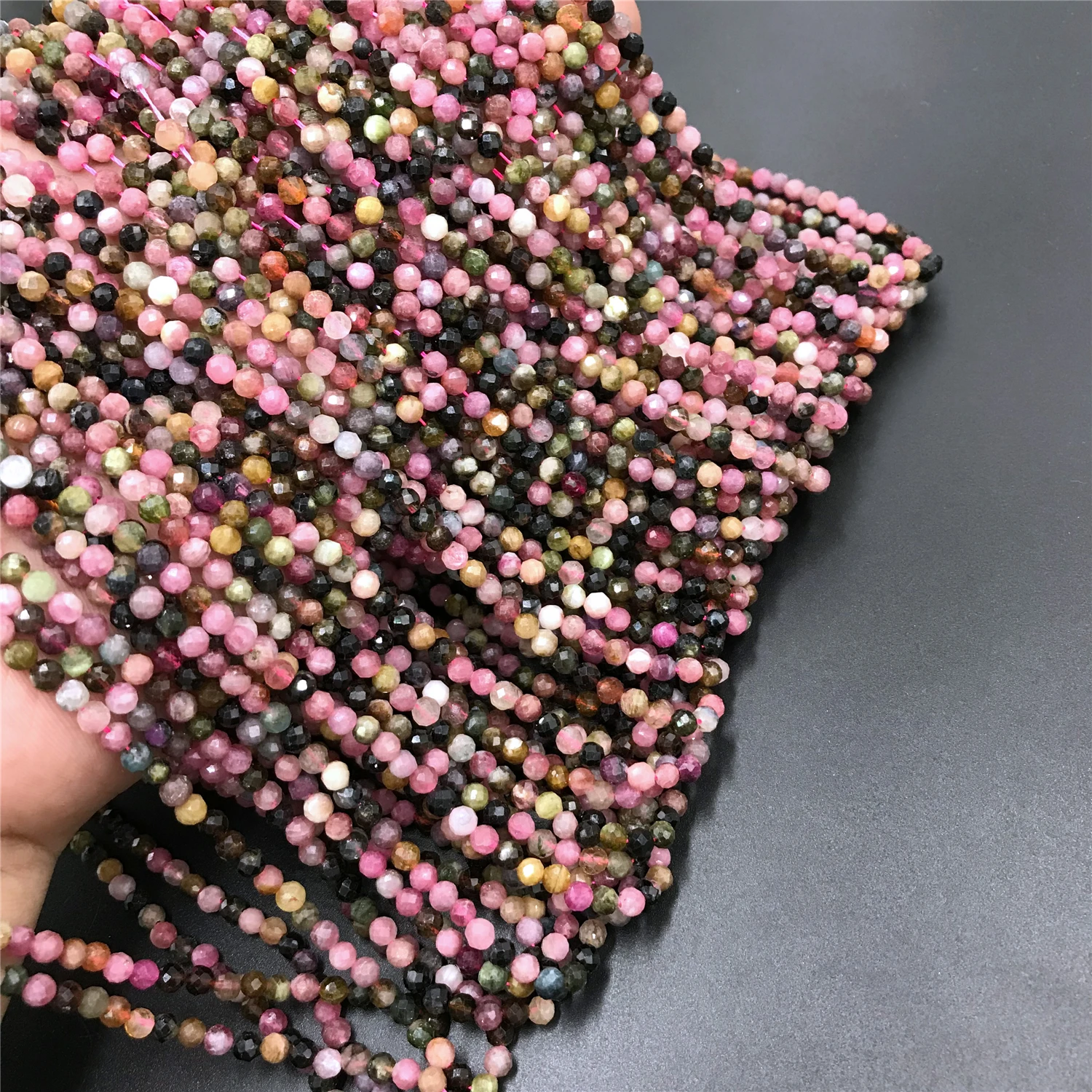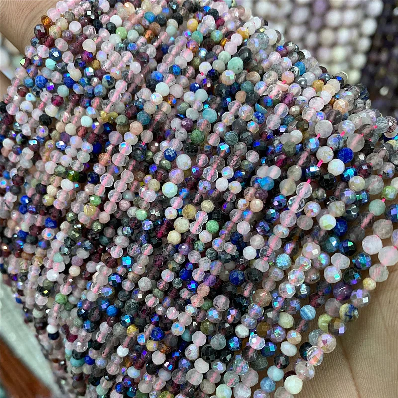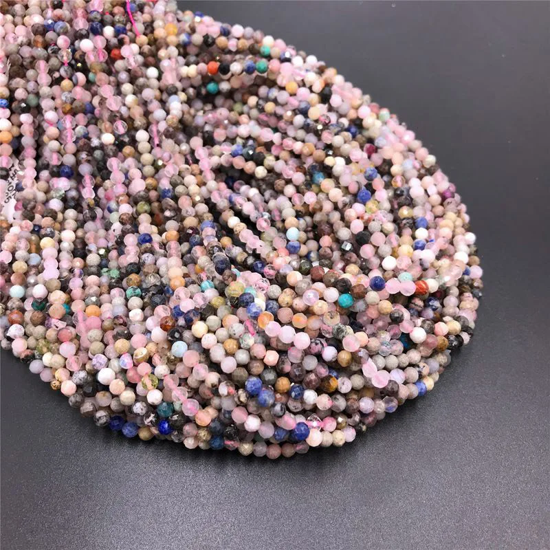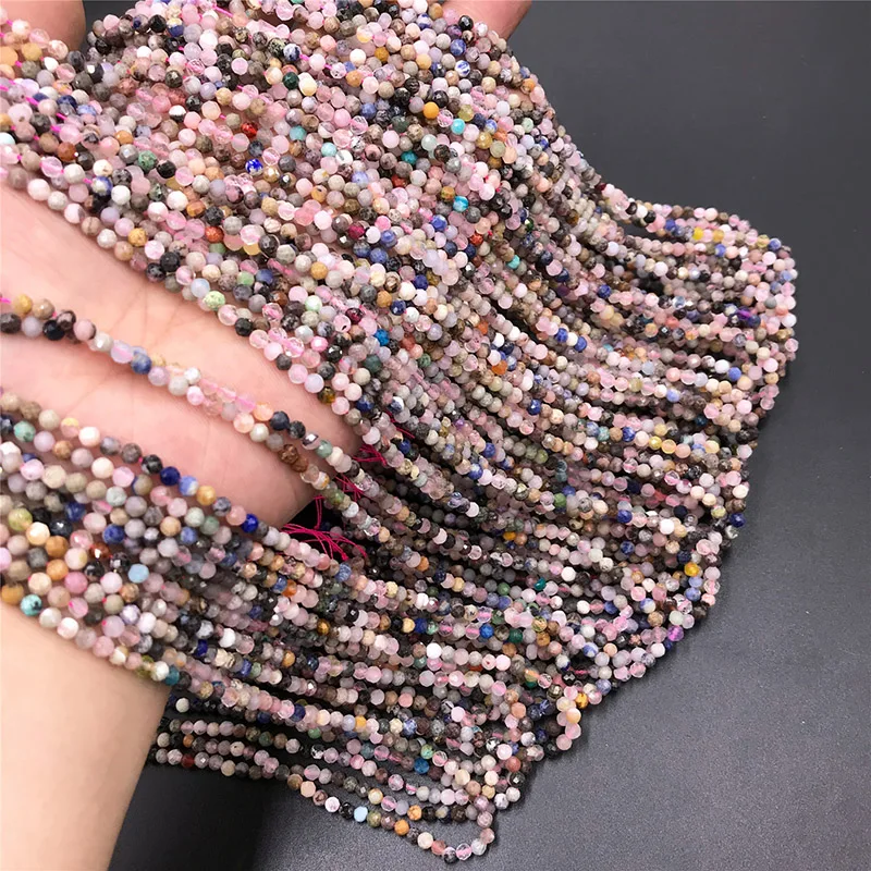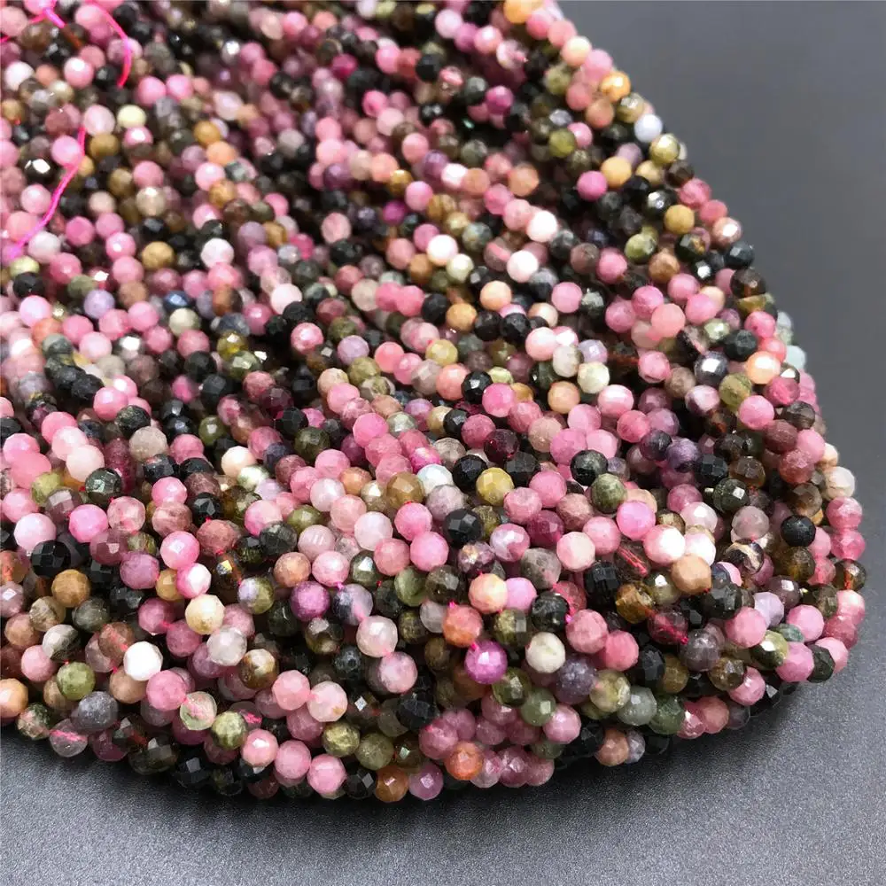Бусины с гранями из натурального турмалина, круглые бусины россыпью с кристаллами для изготовления ювелирных изделий, ожерелий и принадлежности для браслетов, 2 мм, 3 мм