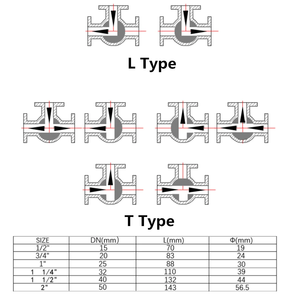 Трехходовой шаровой кран из нержавеющей стали 304, тип L, T, 14, 38, 12, 34, 1, DN8, DN10, DN15, DN20, DN25, с внутренней резьбой BSP