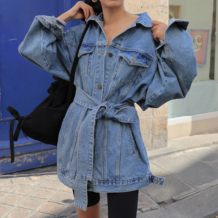 Куртка джинсовая женская на осеньзиму, с поясом, JK8922