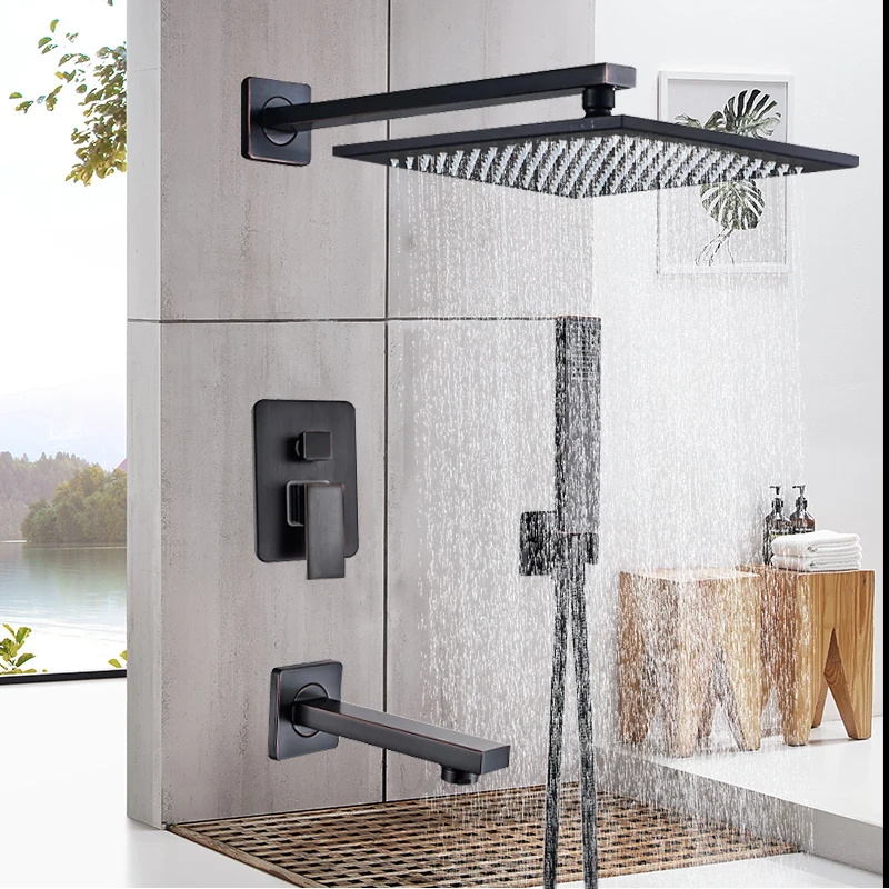 Скрытый смеситель для душа для ванной комнаты черный латунный 2-ходовой клапан смесители для душа с ручным душем 8101216 "насадка для душа с дождевой насадкой