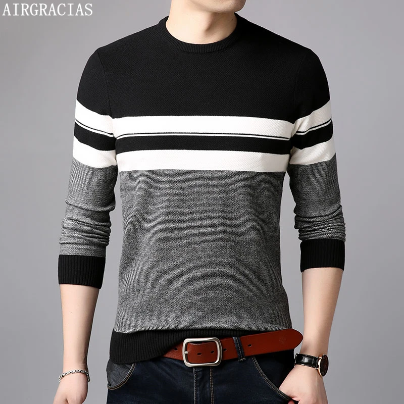 2019 г., Брендовые повседневные мужские пуловеры, вязаный полосатый мужской свитер, мужское платье, Толстые мужские свитеры, Джерси, одежда для осени, новинка