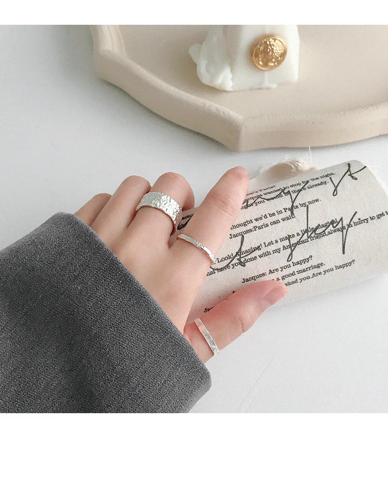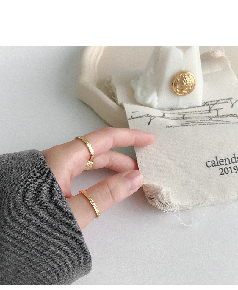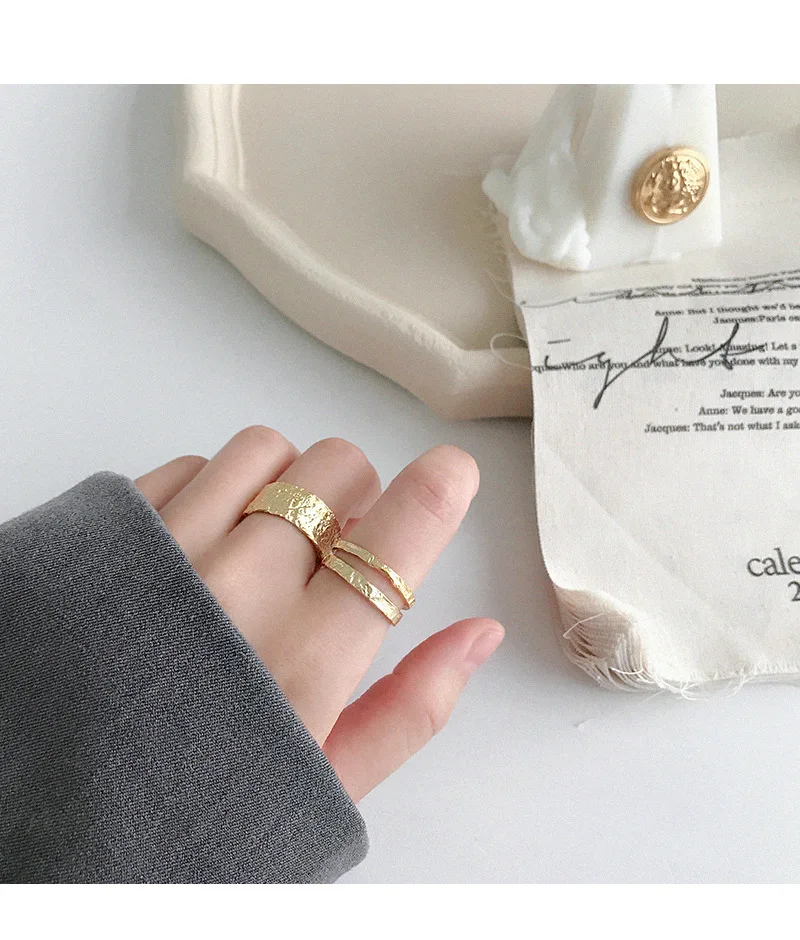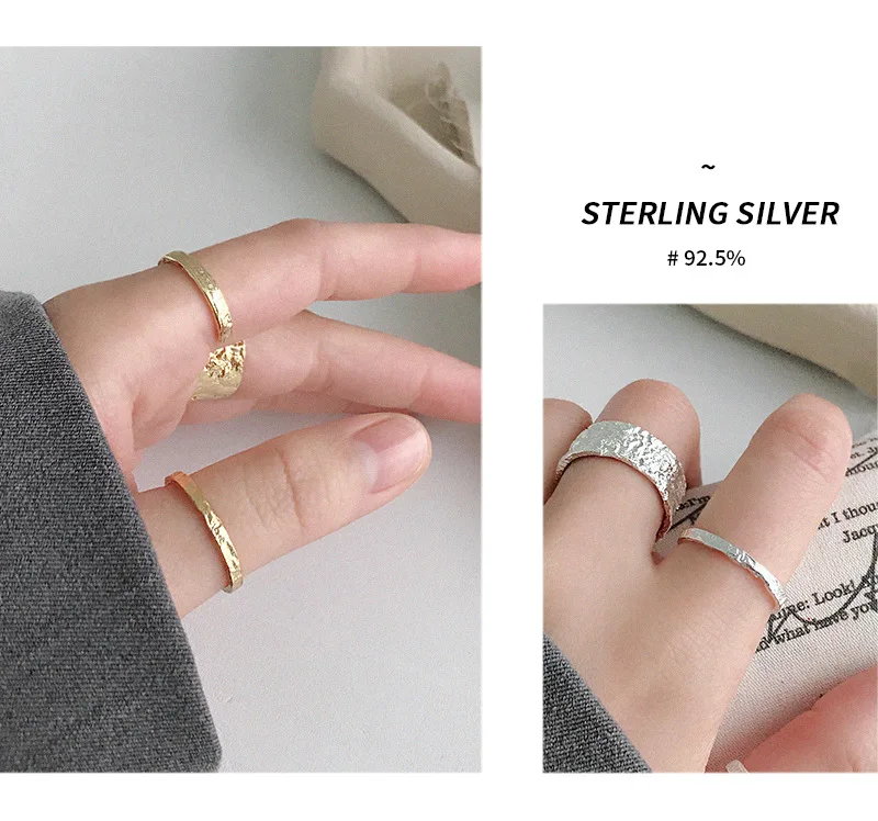 Женское Открытое кольцо из серебра 100% пробы, золотистое и серебристое выпукло-вогнуто-выпуклое кольцо с неравномерной поверхностью, праздничный подарок, 925