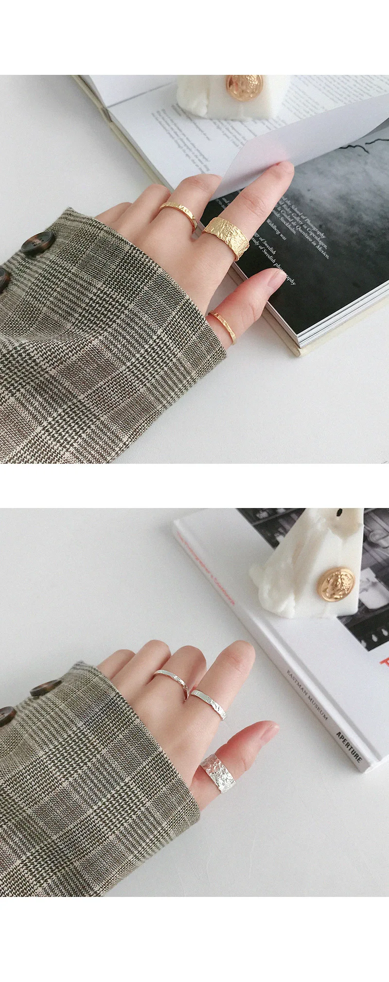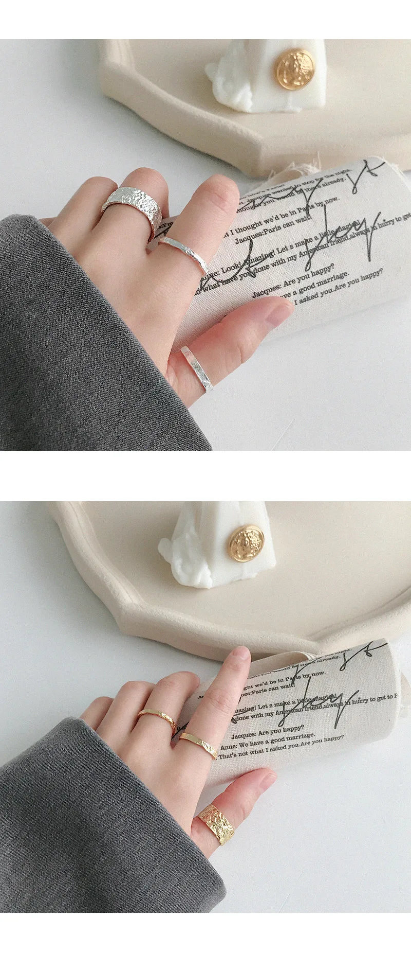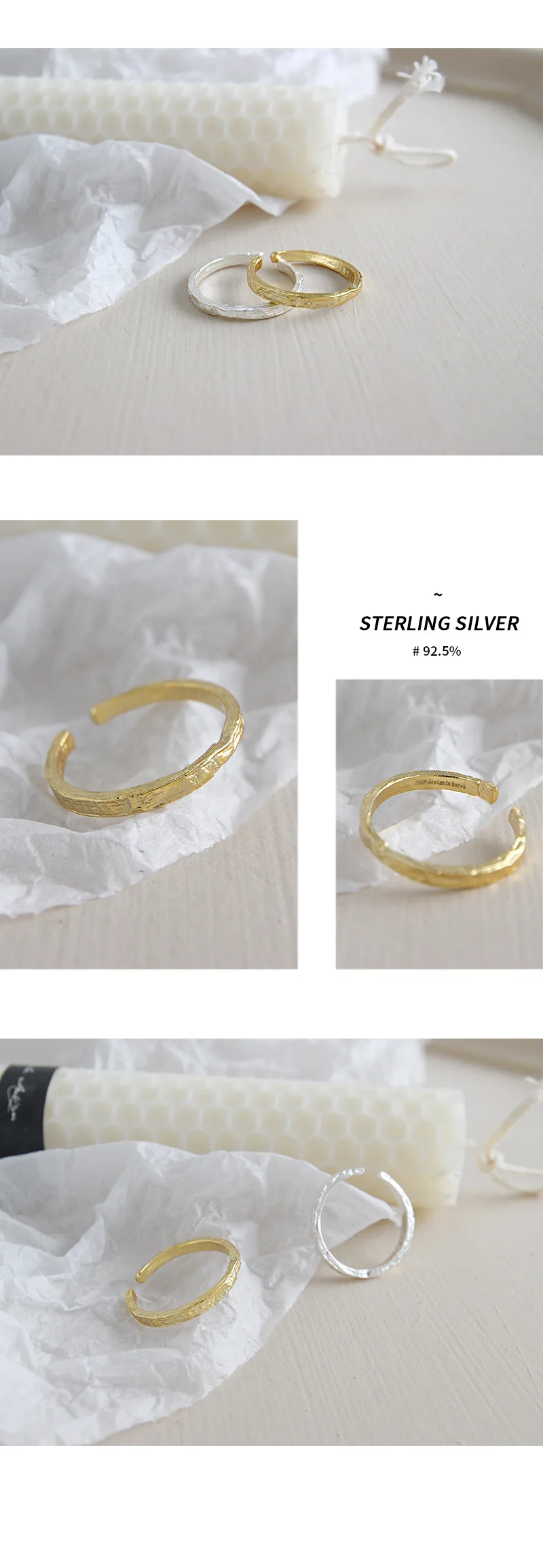 Женское Открытое кольцо из серебра 100% пробы, золотистое и серебристое выпукло-вогнуто-выпуклое кольцо с неравномерной поверхностью, праздничный подарок, 925
