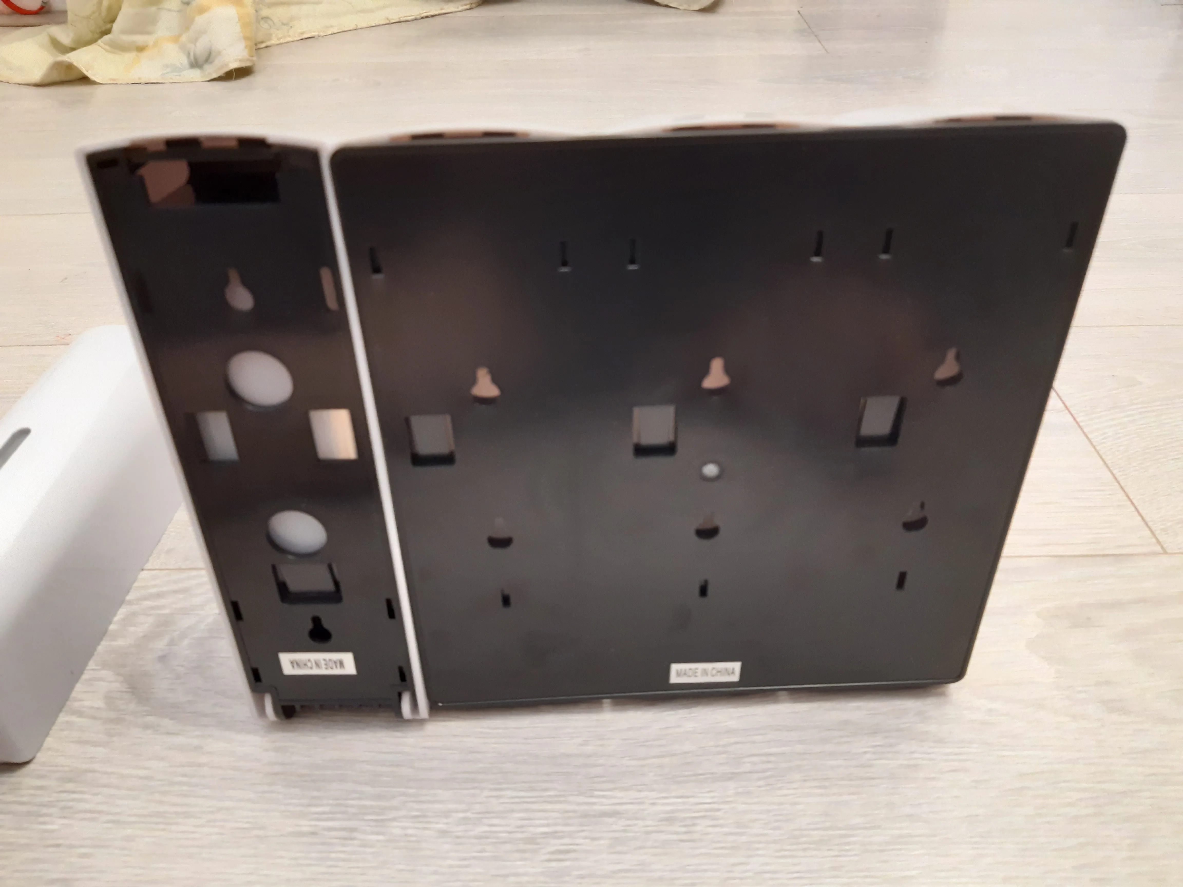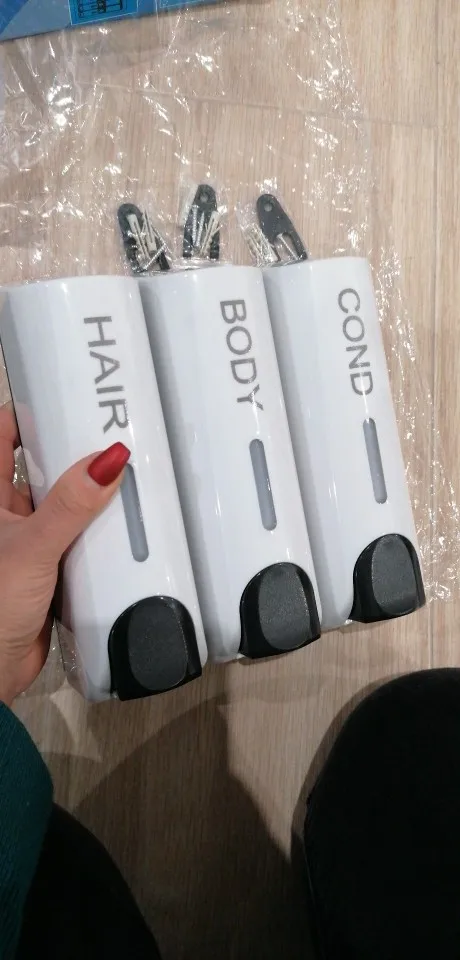 пришло с трещинами возле дырочек для крепления...но собственно ожидала. Захотела проверить что будет если прилепить на термоклей, как ни странно две недели висит. а те, что близки к воде, отвалились, приделали на шурупы. В общем из не удобного, если налили гель или шампунь, то сверху дырочка в контейнере, из-за чего не положить,только вертикально(когда отвалилось долго ходила с ним в руках, пока не придумала как и куда временно поставить).