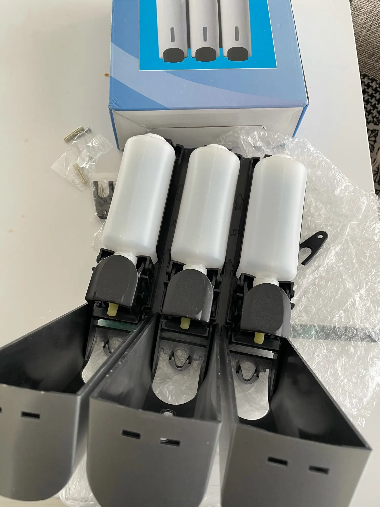 Пришёл заказ быстро, все цело. Выглядят диспенсеры достойно. Пока не установили, поэтому не пользовались.