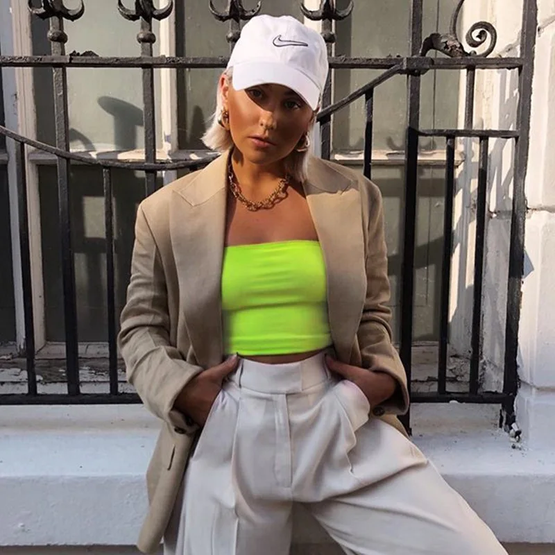 Женский неоновый Топ без бретелек, с открытыми плечами, однотонный,...