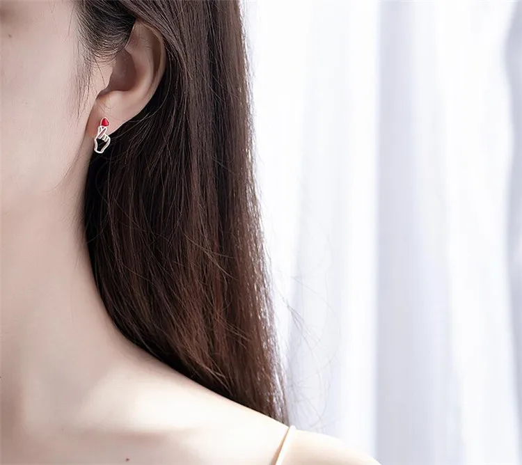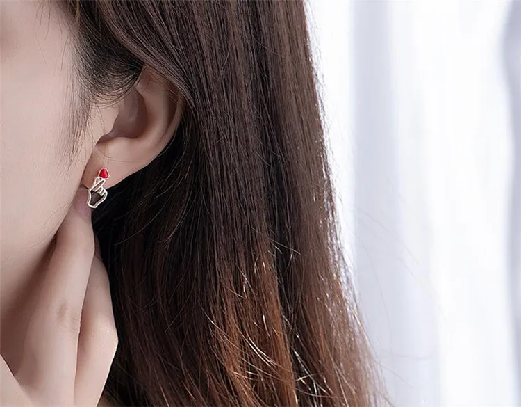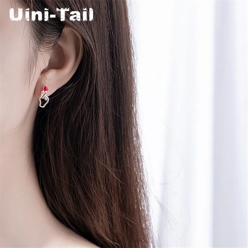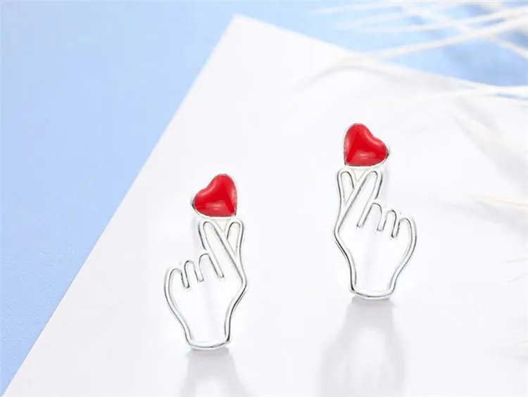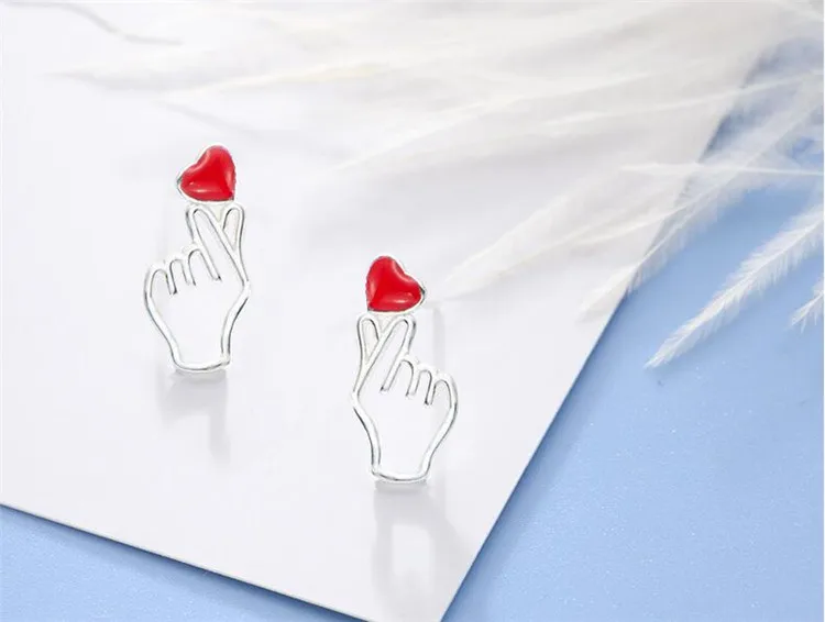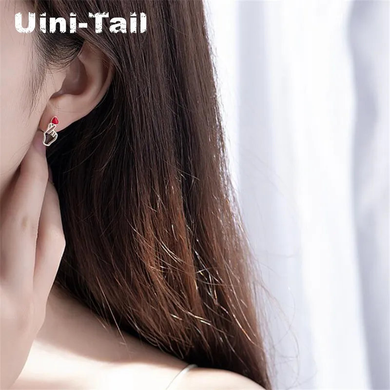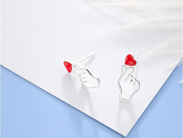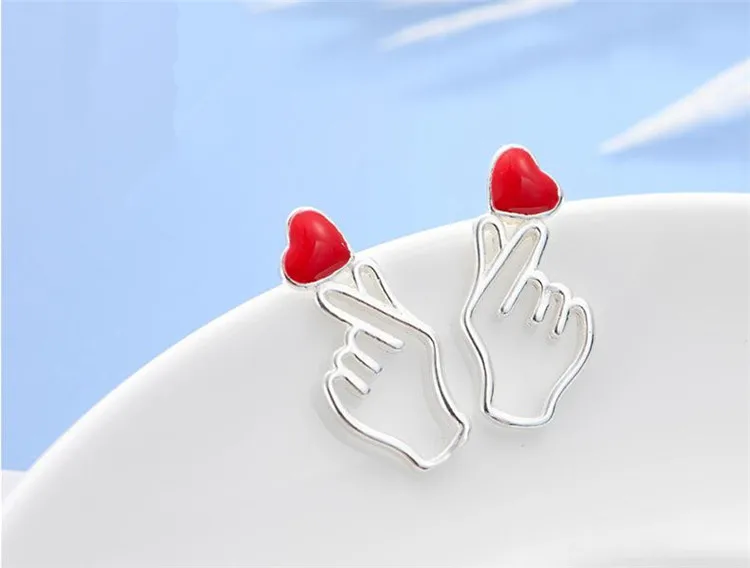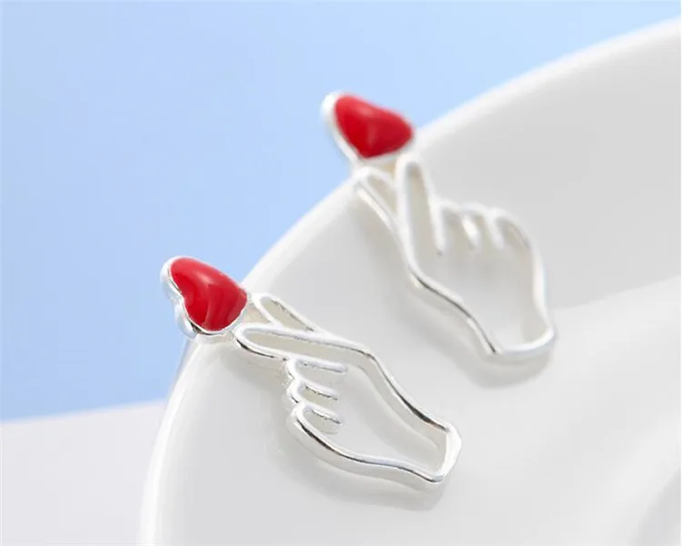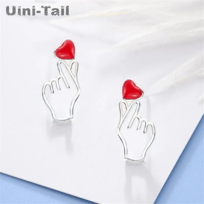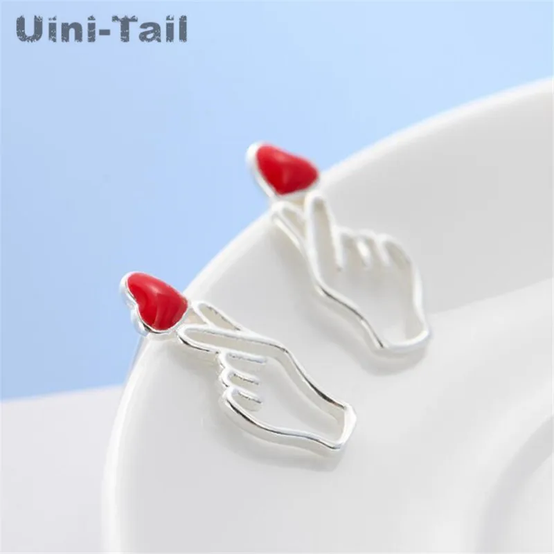 Серьги Uini-Tail из серебра 925 пробы в виде красного сердца